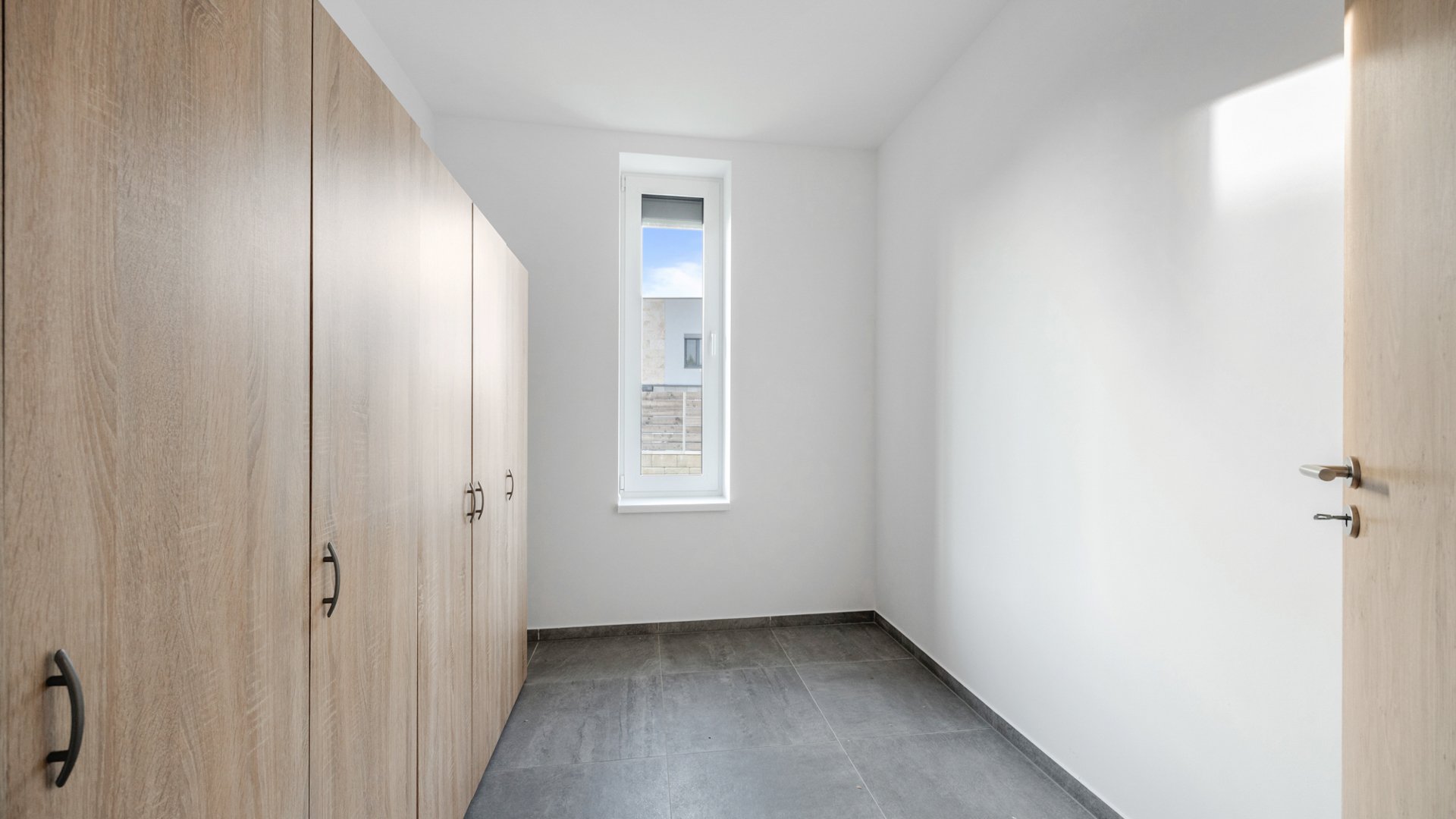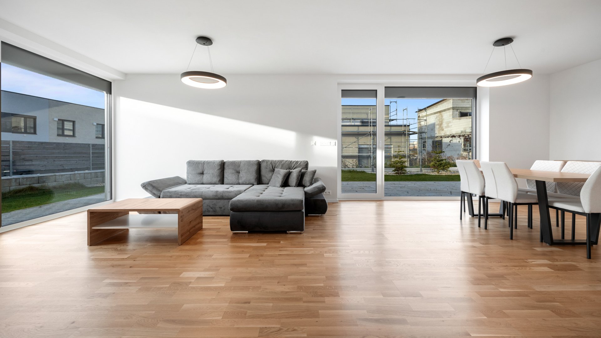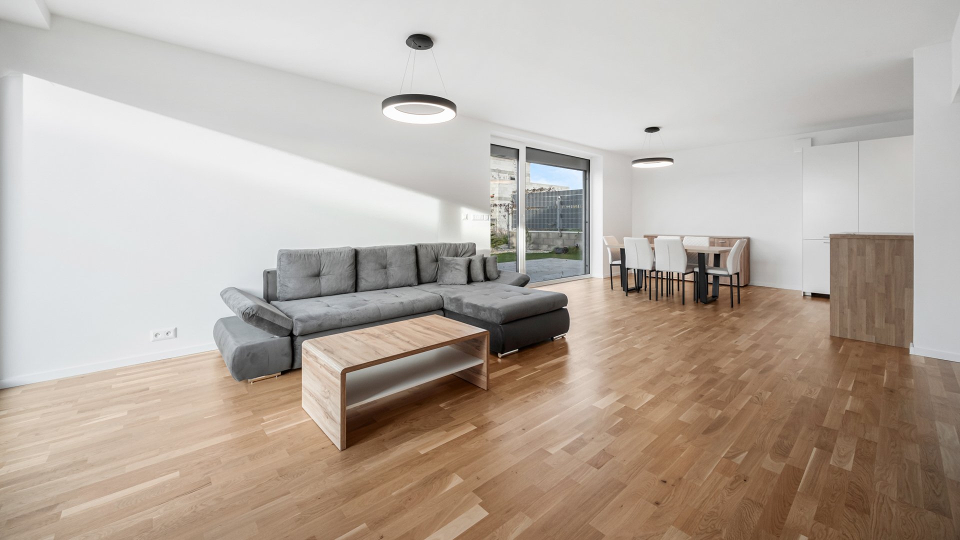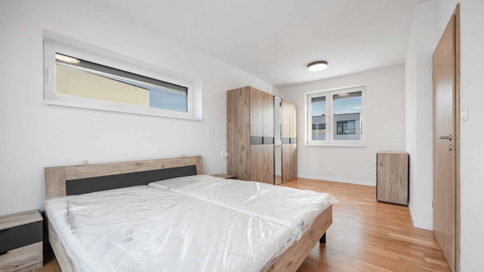 Dvojpodlažná novostavba s energetickým certifikátom A zaujme čistou architektúrou a premysleným dispozičným riešením. Prízemie tvorí denná časť pozostávajúca z priestrannej obývacej izby, kompletne zariadenej kuchyne a jedálenského kútu. Veľkoformátové presklenia zabezpečujú maximálne presvetlenie priestoru a zároveň prepájajú interiér s upravenou záhradou a terasou orientovanou na severozápad. Na prízemí sa ďalej nachádza hosťovská izba, kúpeľňa so sprchovým kútom a walk-in šatník. Nočné podlažie zahŕňa tri spálne, dve z nich poskytujú priamy vstup na veľkorysú terasu.