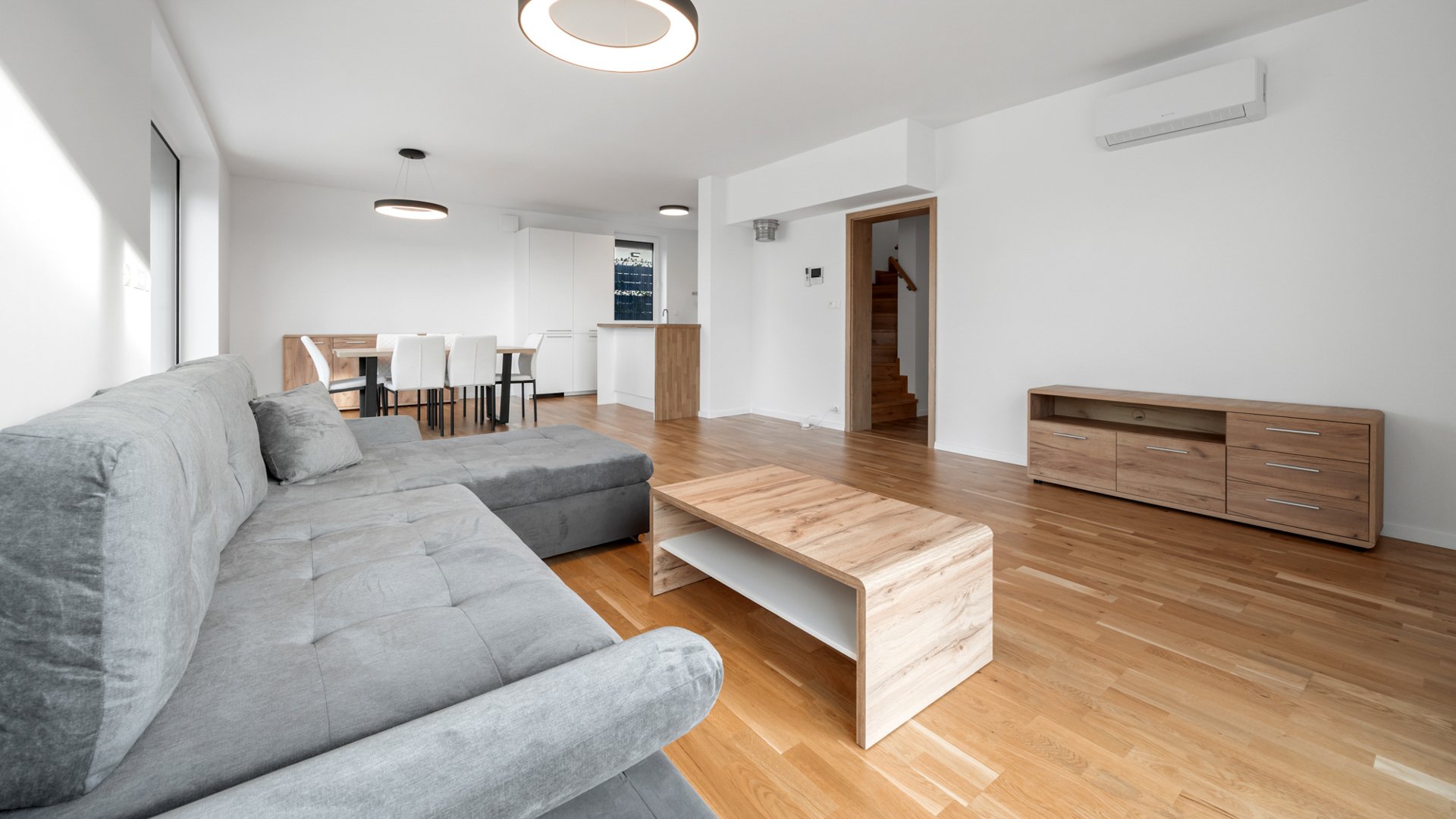 Dom je vybavený podlahovým vykurovaním, centrálnou klimatizáciou vo všetkých miestnostiach, exteriérovými elektrickými roletami a videovrátnikom. Nehnuteľnosť sa momentálne dozariaďuje a bude sa prenajímať kompletne zariadená.
