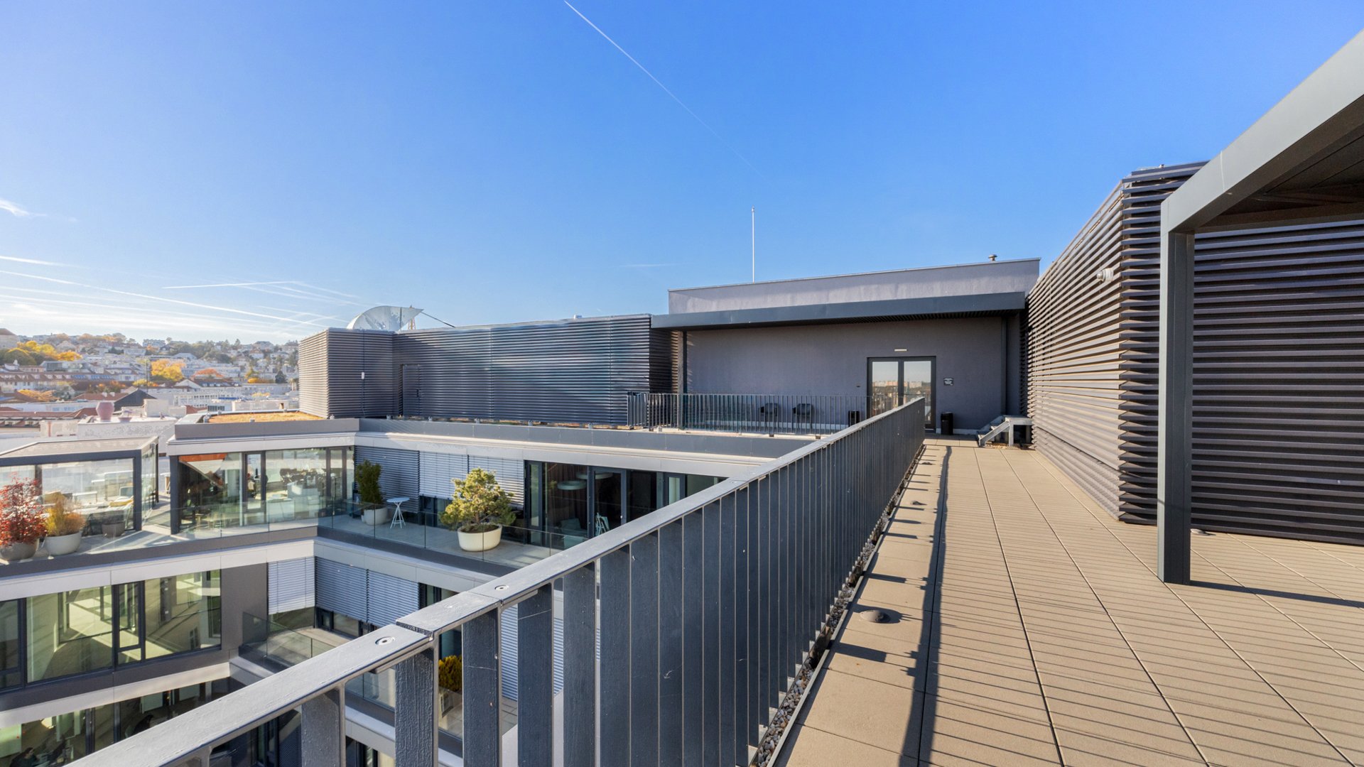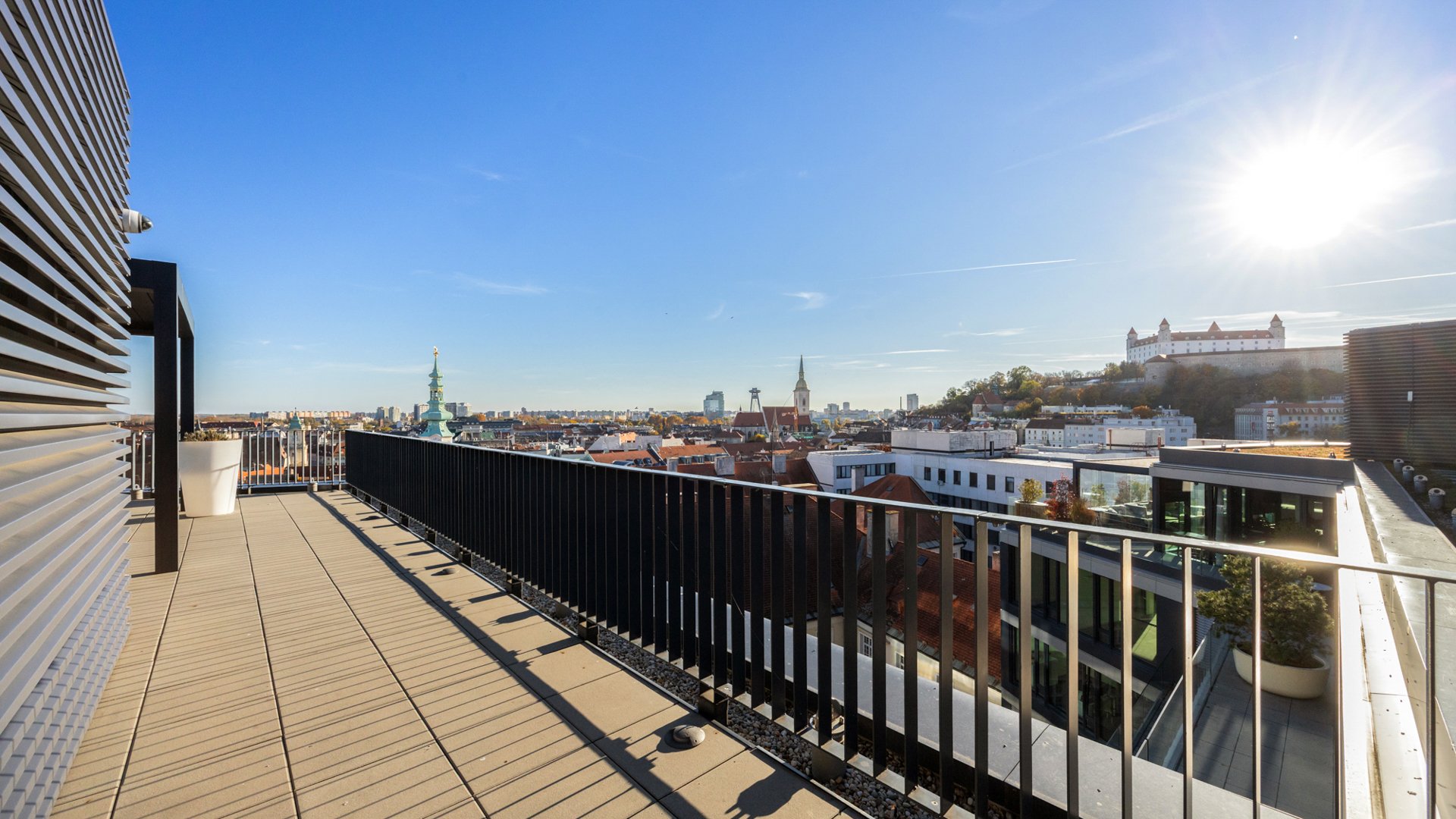 Zelená strecha so zónou pre oddych či eventy, možnosť umiestnenia loga nájomcu na streche, reprezentatívne spoločné priestory a parkovacie státia v podzemnej garáži pre zamestnancov aj návštevníkov, doplnené o cyklistickú infraštruktúru (parkovanie bicyklov, priamy prístup do šatní a spŕch), robia z tejto adresy výnimočný priestor pre stabilné firemné zázemie aj tých najnáročnejších klientov.
