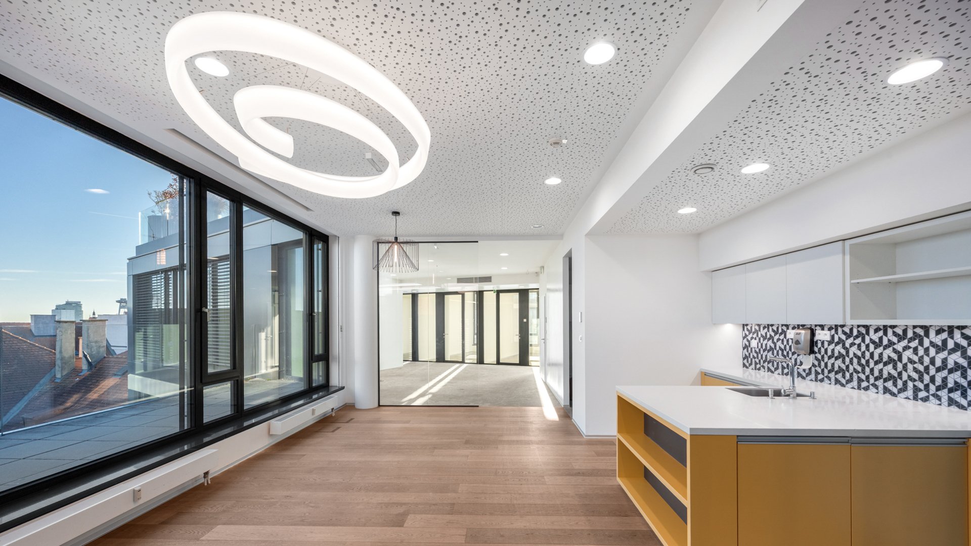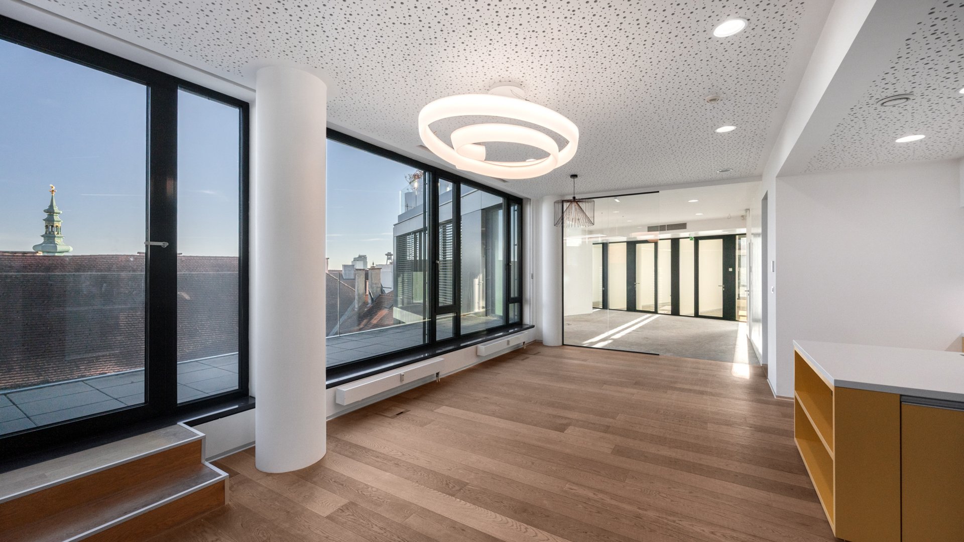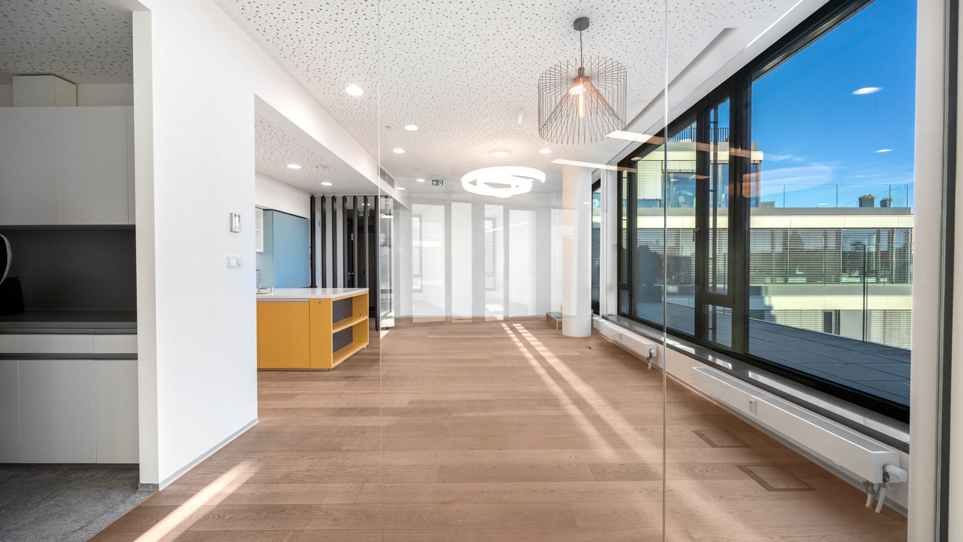 K dispozícii sú štyri kancelárske jednotky s panoramatickým výhľadom na Bratislavský hrad, centrum mesta aj Malé Karpaty – dve na 3. nadzemnom podlaží (515 m² a 356 m²), ktoré možno prenajať jednotlivo alebo ako celok s nadštandardnou výmerou (871 m²), doplnené o ďalšie dve kancelárske jednotky na 2. NP (372 m²) a 6. NP (202 m²). Všetky kancelárie sú pripravené v štandarde fit-out, ďalšie úpravy sú predmetom individuálnej dohody.