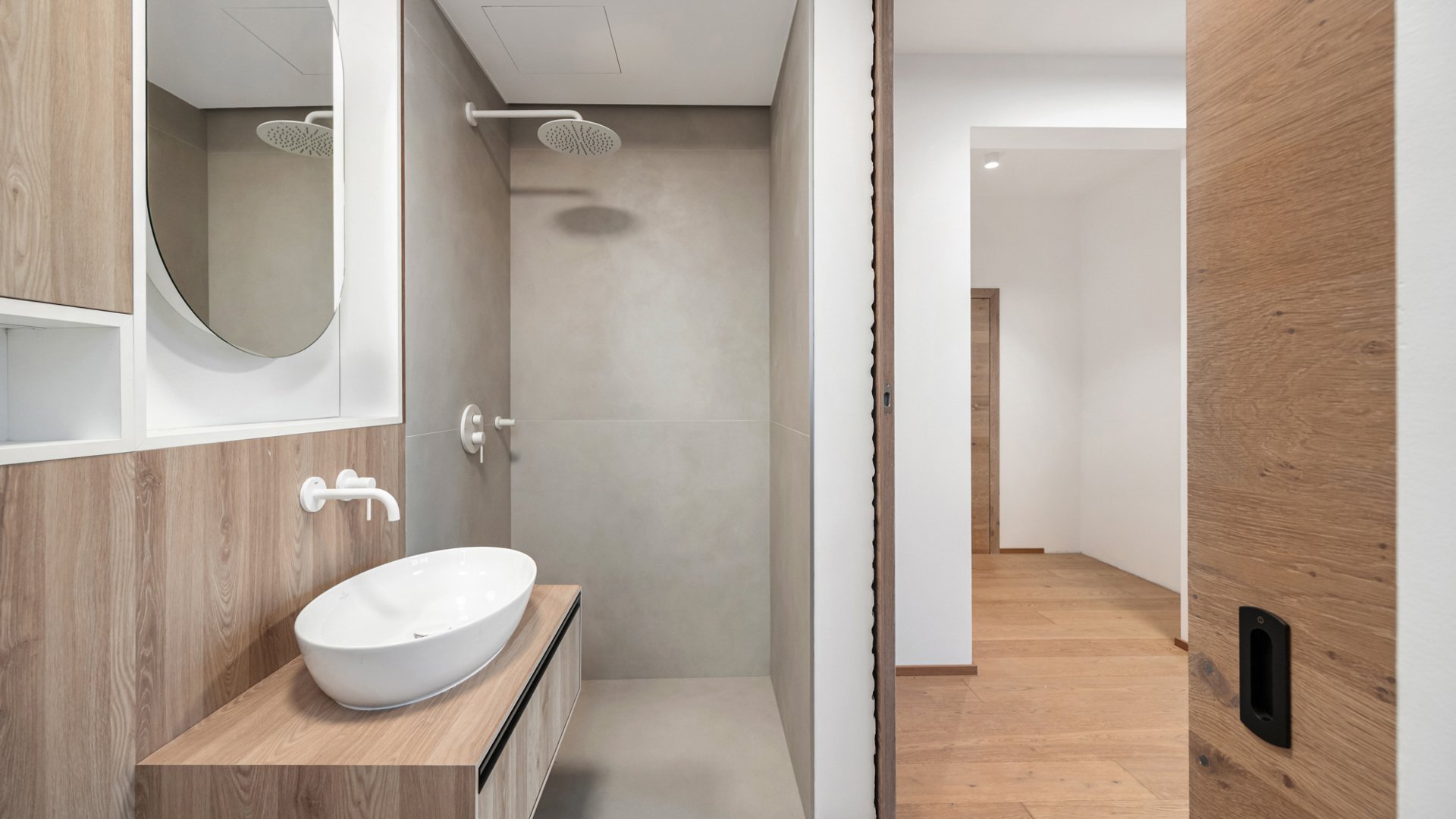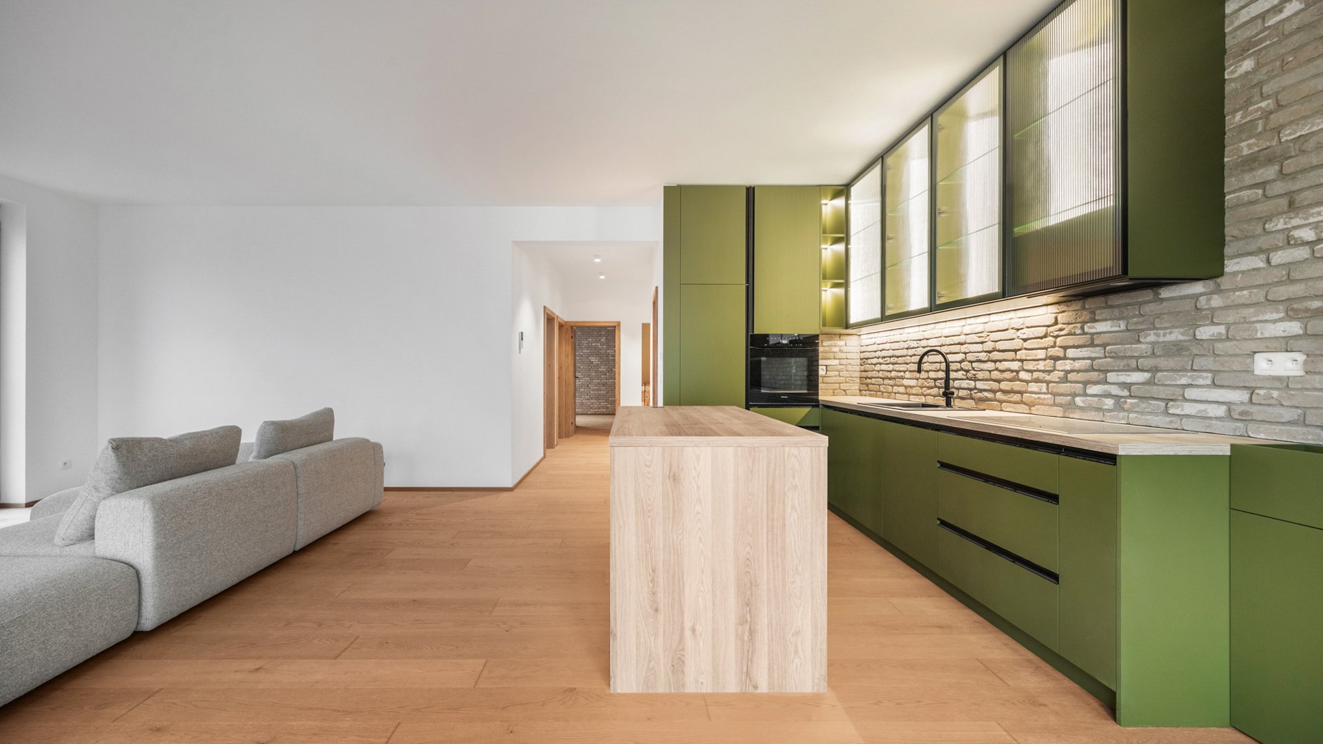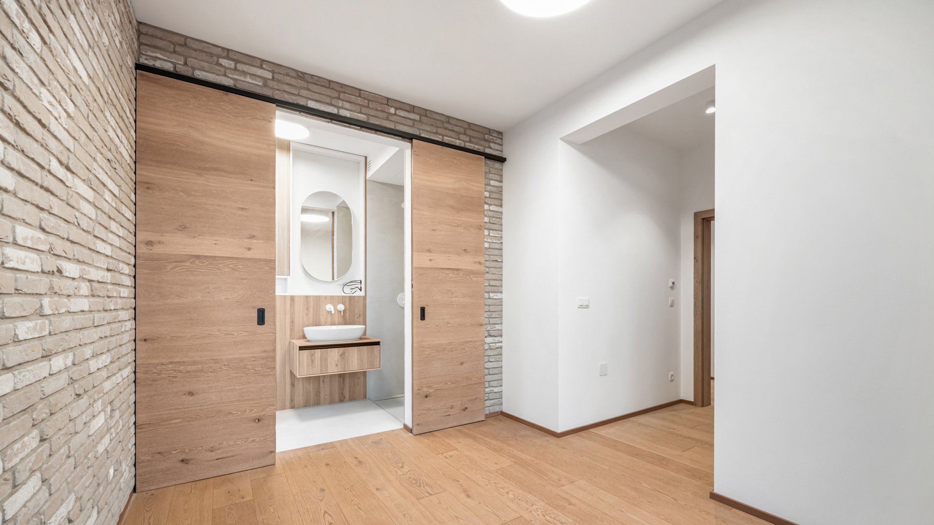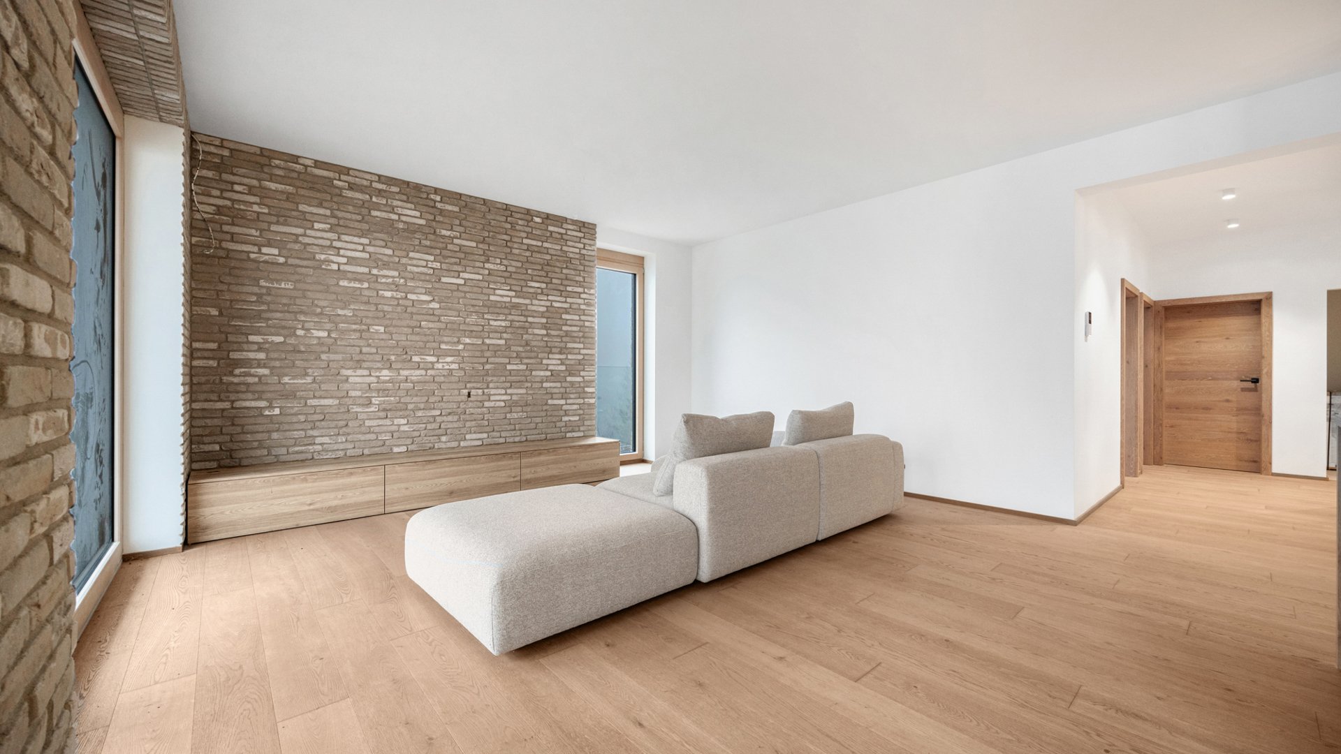 Nadčasový interiér bol navrhnutý Ateliérom Silvia Brna. Na záver fotogalérie sú k dispozícii ilustračné vizualizácie riešenia spálne, detskej izby, vstupnej chodby so šatníkom a technickej miestnosti. Kvalitné materiály ako drevené podlahy Admonter, interiérové zárubne a dvere rakúskeho výrobcu značky DANA či vonkajšie elektrické žalúzie podčiarkujú vysoký štandard nehnuteľnosti. Komfort dopĺňa podlahové vykurovanie a predpríprava na klimatizáciu.