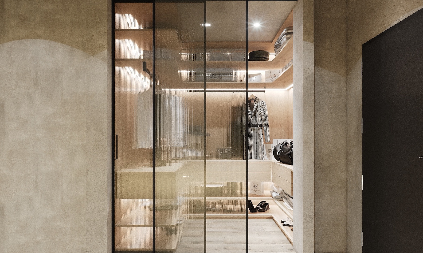 Dispozícia bytu je navrhnutá s dôrazom na funkčnosť a vizuálnu čistotu. Denný priestor tvorí kompletne vybavená kuchyňa so spotrebičmi Miele, jedálenská časť a obývacia zóna so vstupom na terasu. Nočná časť pozostáva z dvoch spální a hlavnej spálne s en-suite kúpeľňou. Samozrejmosťou je ďalšia kúpeľňa, technická miestnosť/práčovňa a praktický šatníkový priestor pri vstupe.