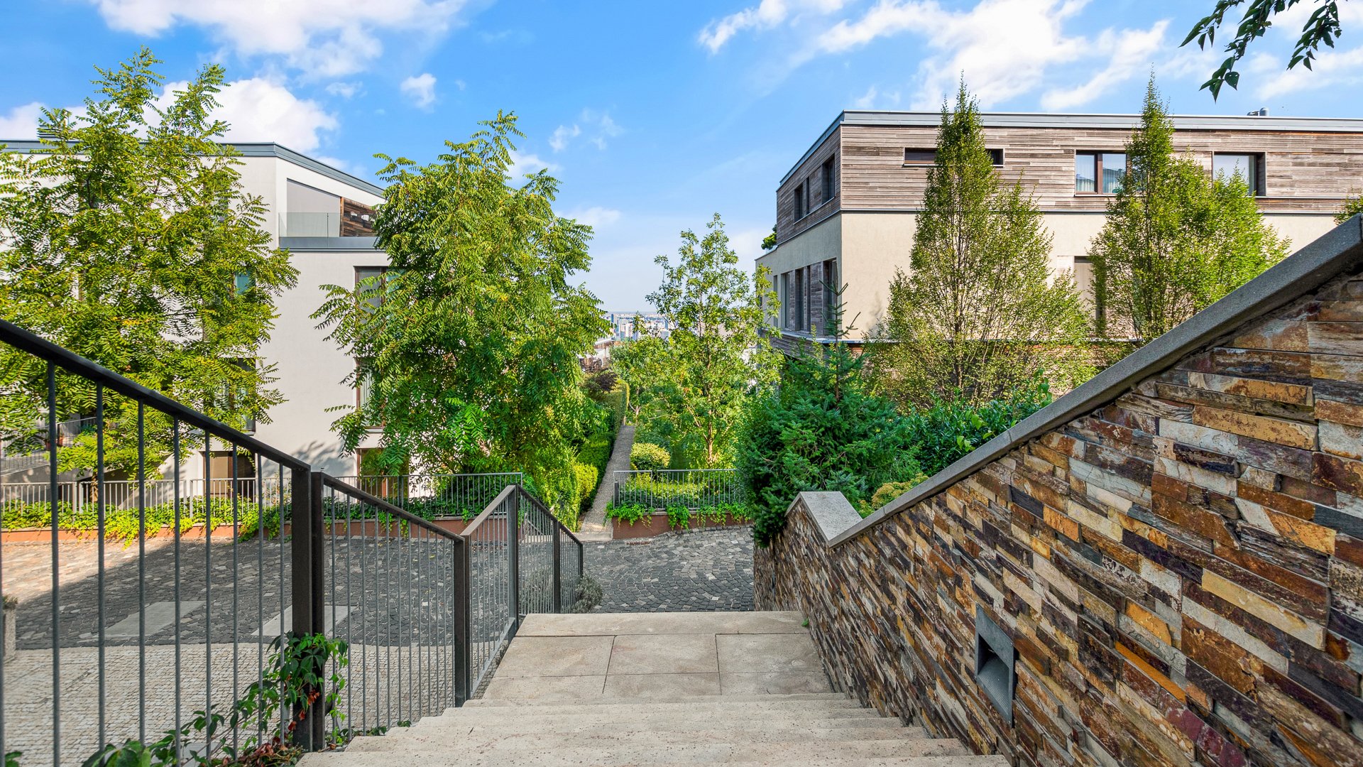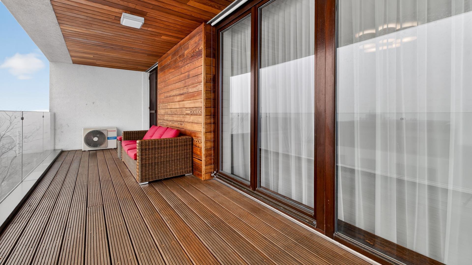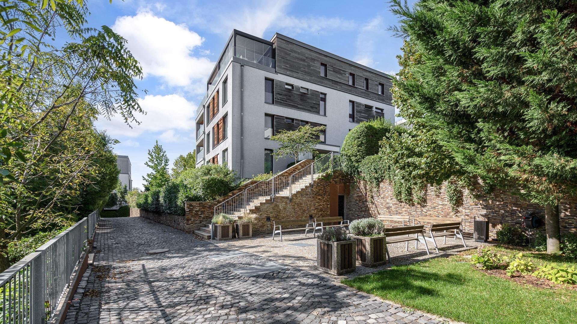 Benefitom tohto kompletne zariadeného bytu je krytá terasa s výmerou 18 m² s posedením a príjemným výhľadom, ako aj starostlivo upravené okolie uzatvoreného areálu. Vyrastené stromy, parková úprava zelene s lavičkami a detským ihriskom v kombinácii s 24-hodinovou strážnou službou spĺňa všetky požiadavky na nadštandardné bývanie.