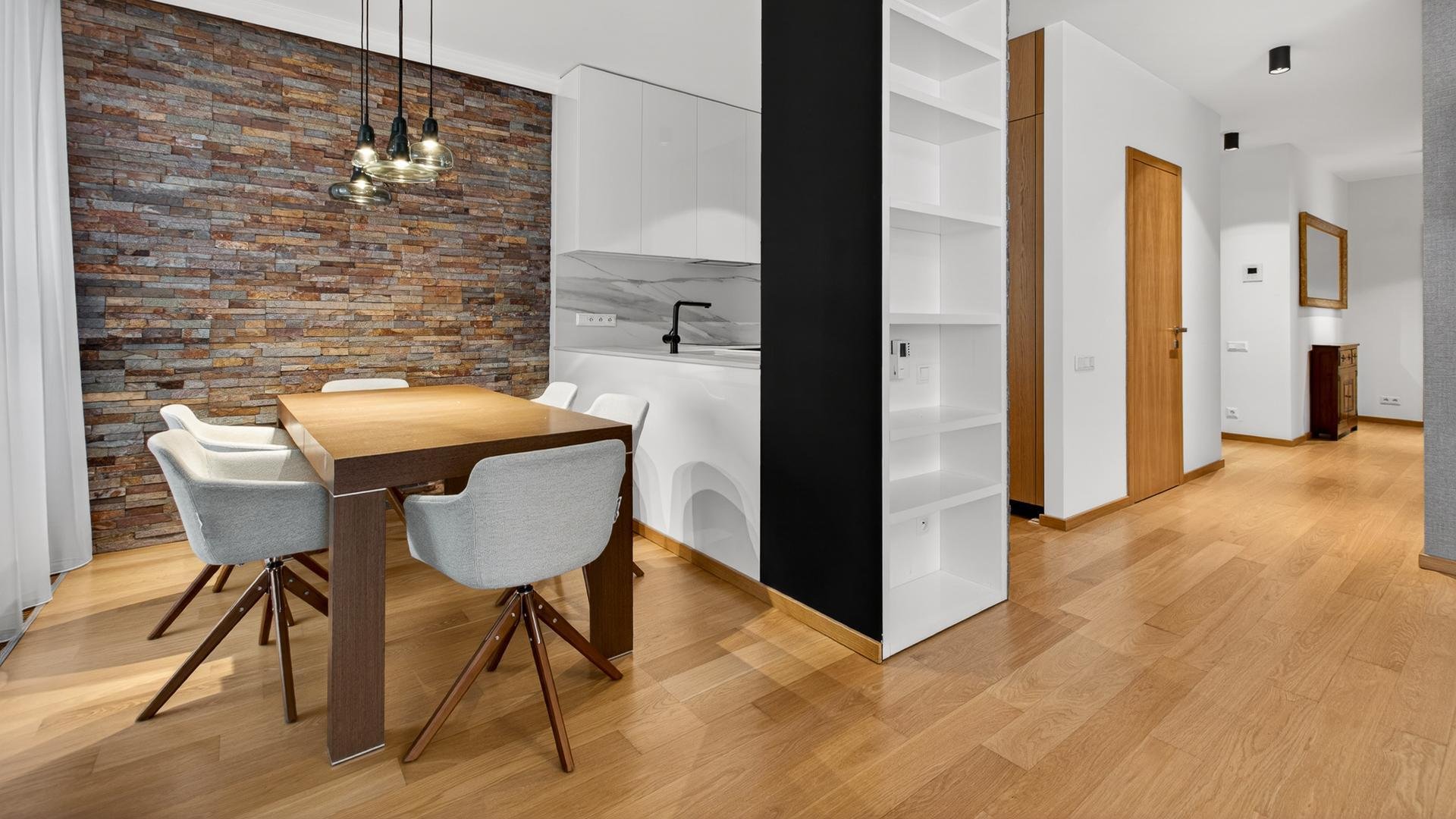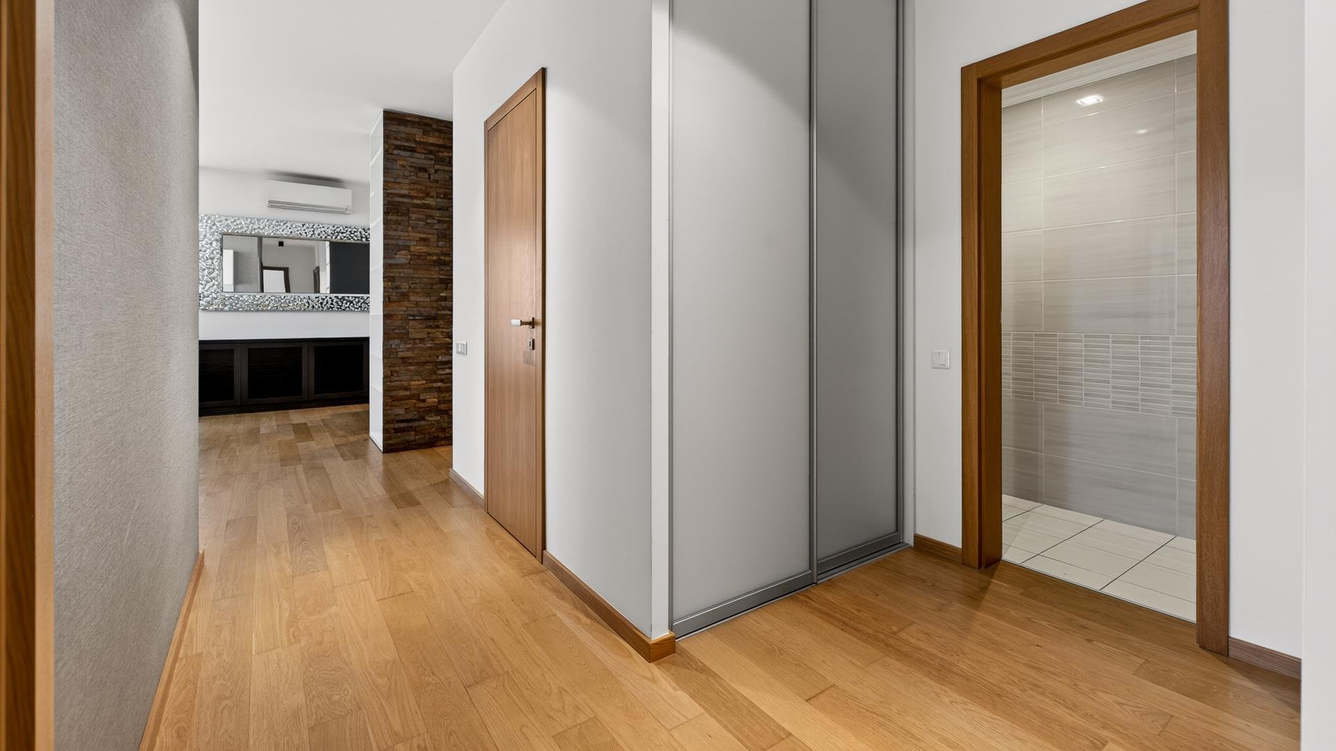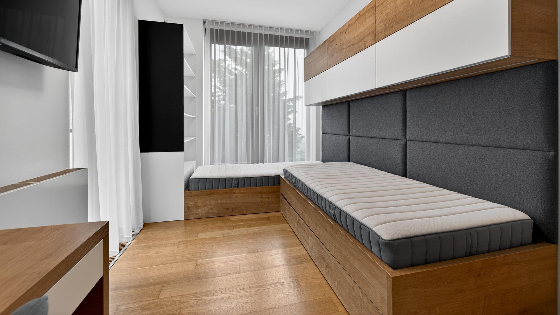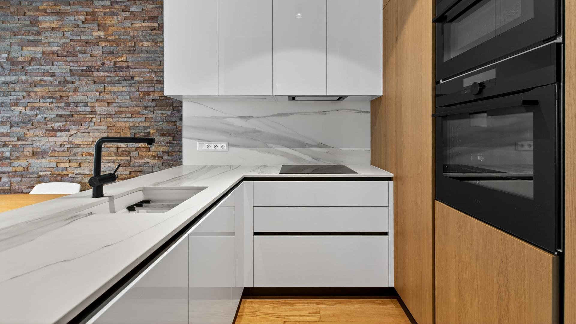 Dispozične byt pozostáva z otvoreného konceptu obývacej zóny, na ktorú plynule nadväzuje kompletne vybavená kuchynská linka so zabudovanými AEG spotrebičmi. Nočná časť ponúka dve spálne so vstavanými šatníkovými zostavami. Samozrejmosťou je kúpeľňa a samostatná toaleta. Nový nájomca určite ocení aj technickú miestnosť s práčkou a sušičkou.