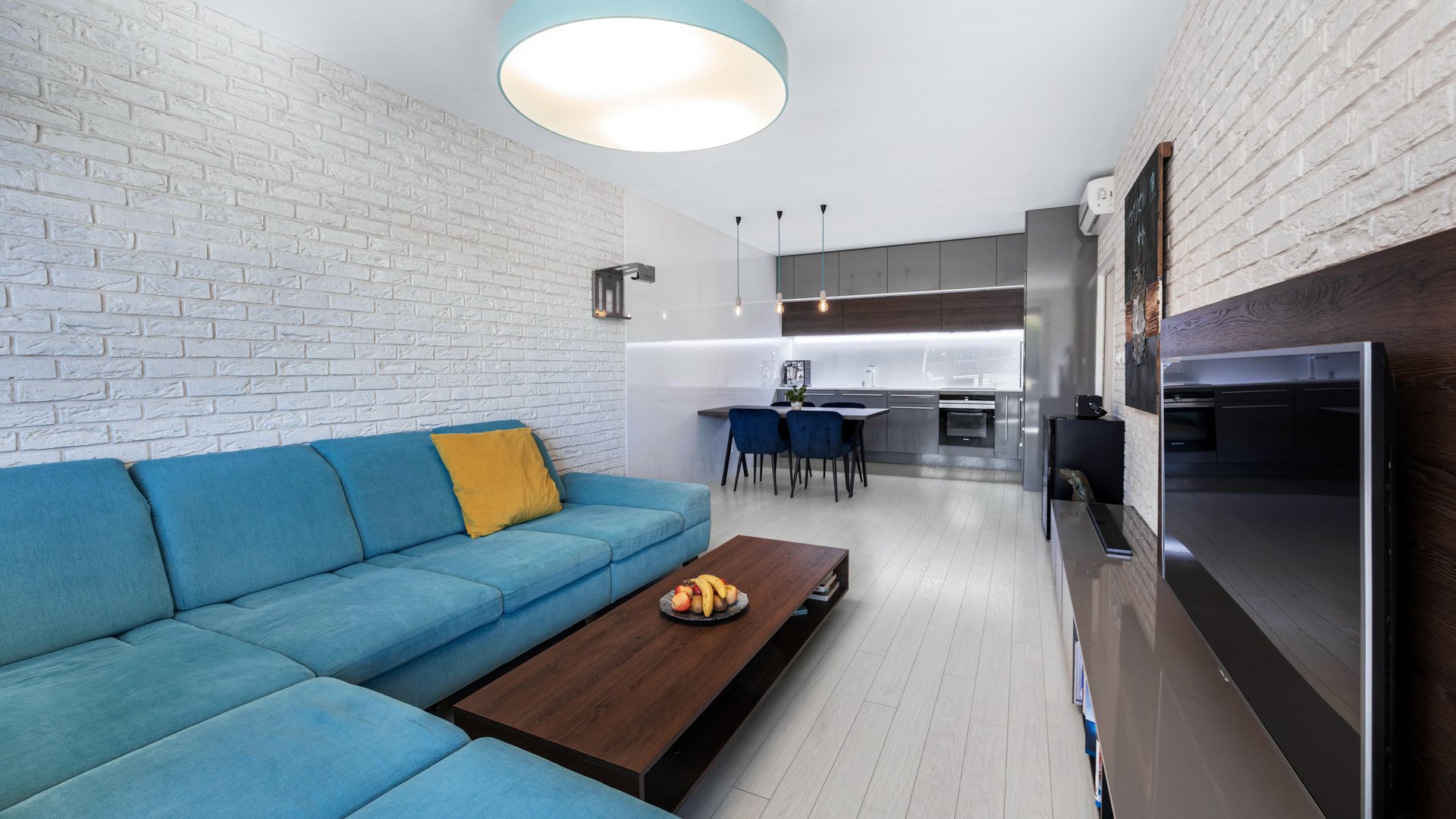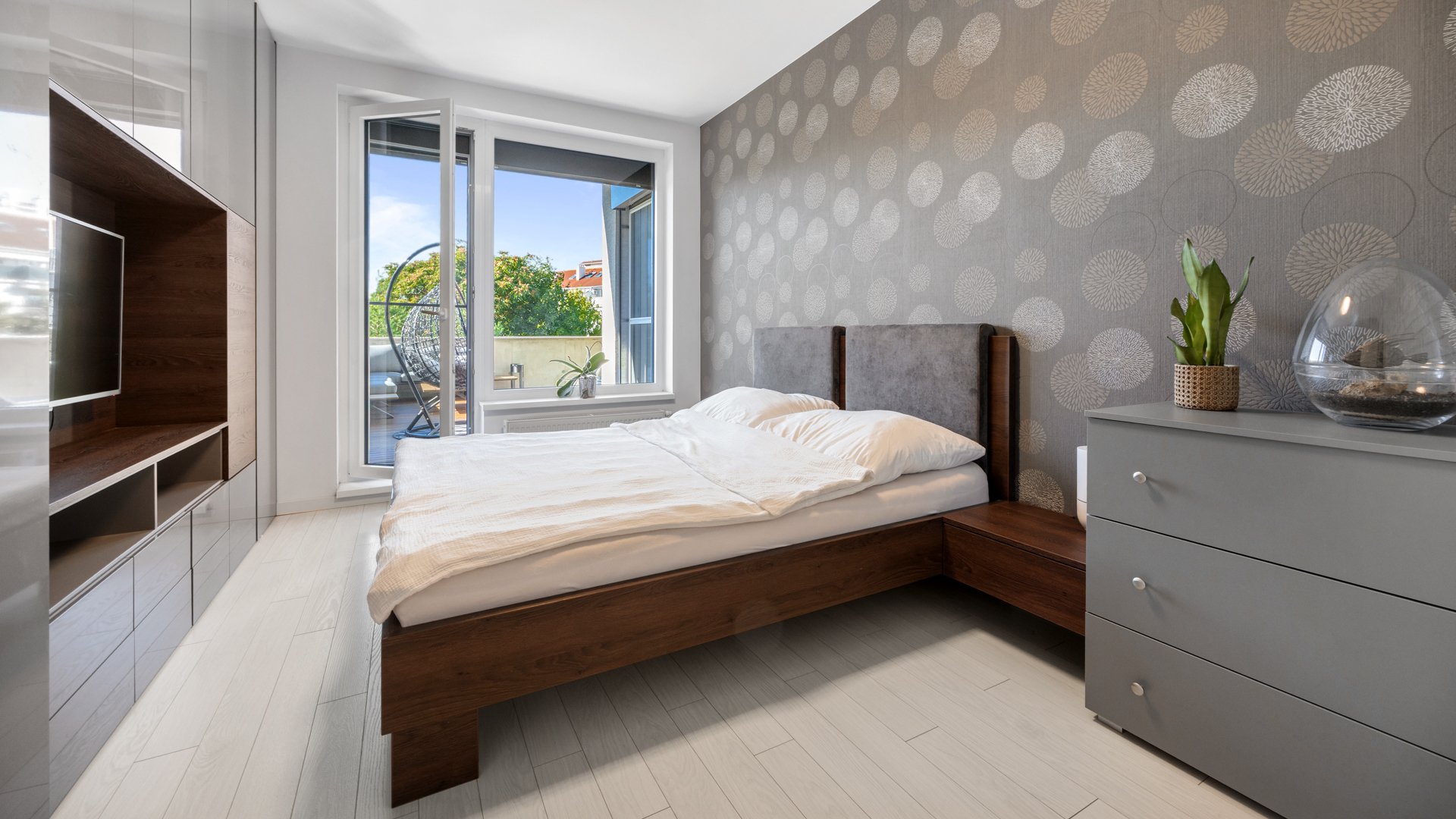 Denná časť bytu pozostáva z priestrannej obývacej izby plynulo prepojenej s jedálenskou časťou a kompletne vybavenou kuchyňou. K dispozícii je jedna spálňa. Benefitom je prepojenie oboch miestností s exteriérom - priamy vstup na terasu s výmerou 36 m² s pohodlným sedením. Samozrejmosťou je kúpeľňa, samostatná toaleta a technická miestnosť.