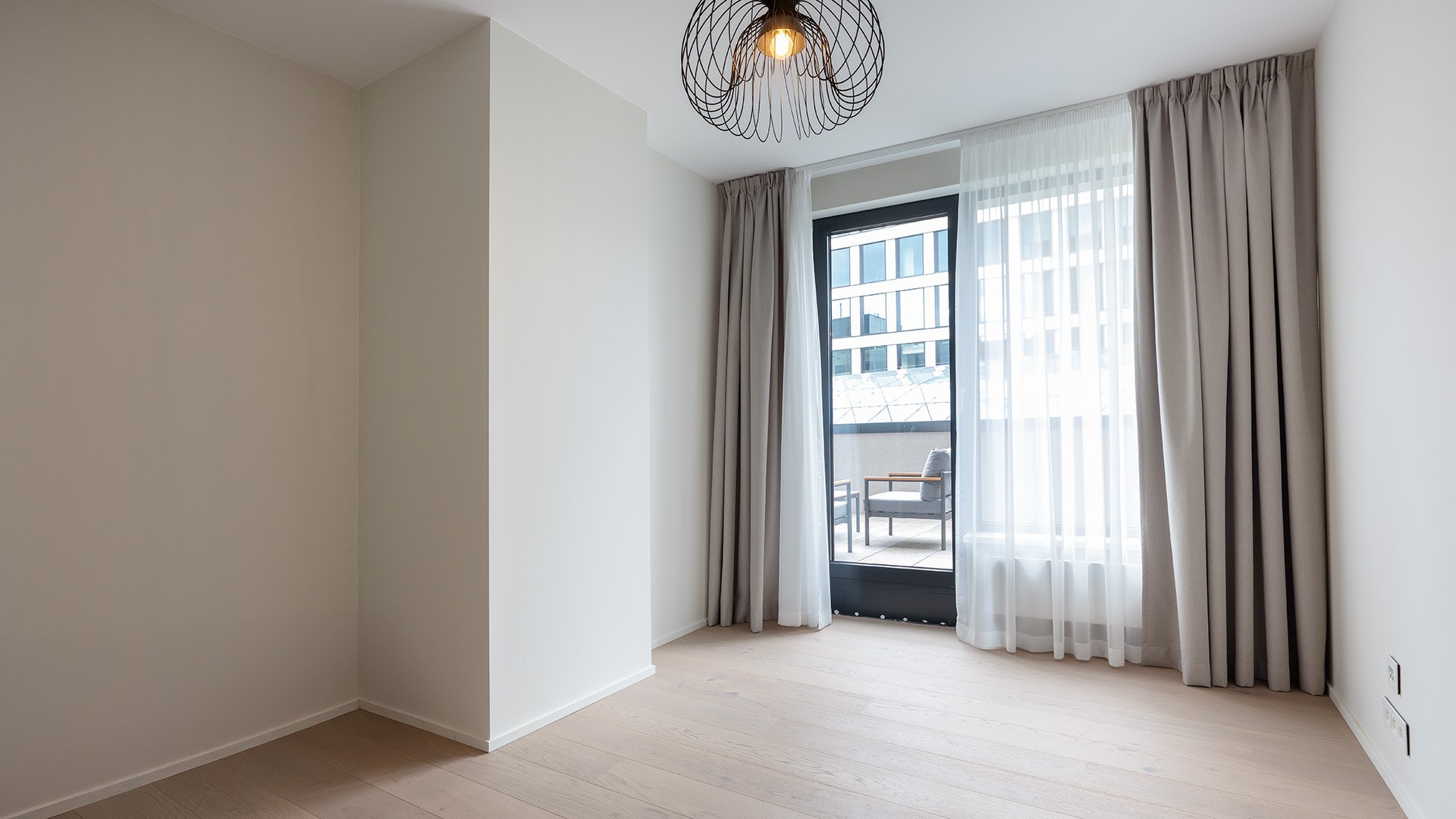 The apartment, with a 141 sqm interior complemented by an 18 sqm loggia and a 36 sqm terrace, is fully furnished in collaboration with the renowned design studio FIVE STAR LIVING. The interior combines sophisticated aesthetics with timeless quality through exclusive brands - from Bauwerk wooden floors, VIVA Porte interior doors, Molteni&C furniture, to Haomy accessories.