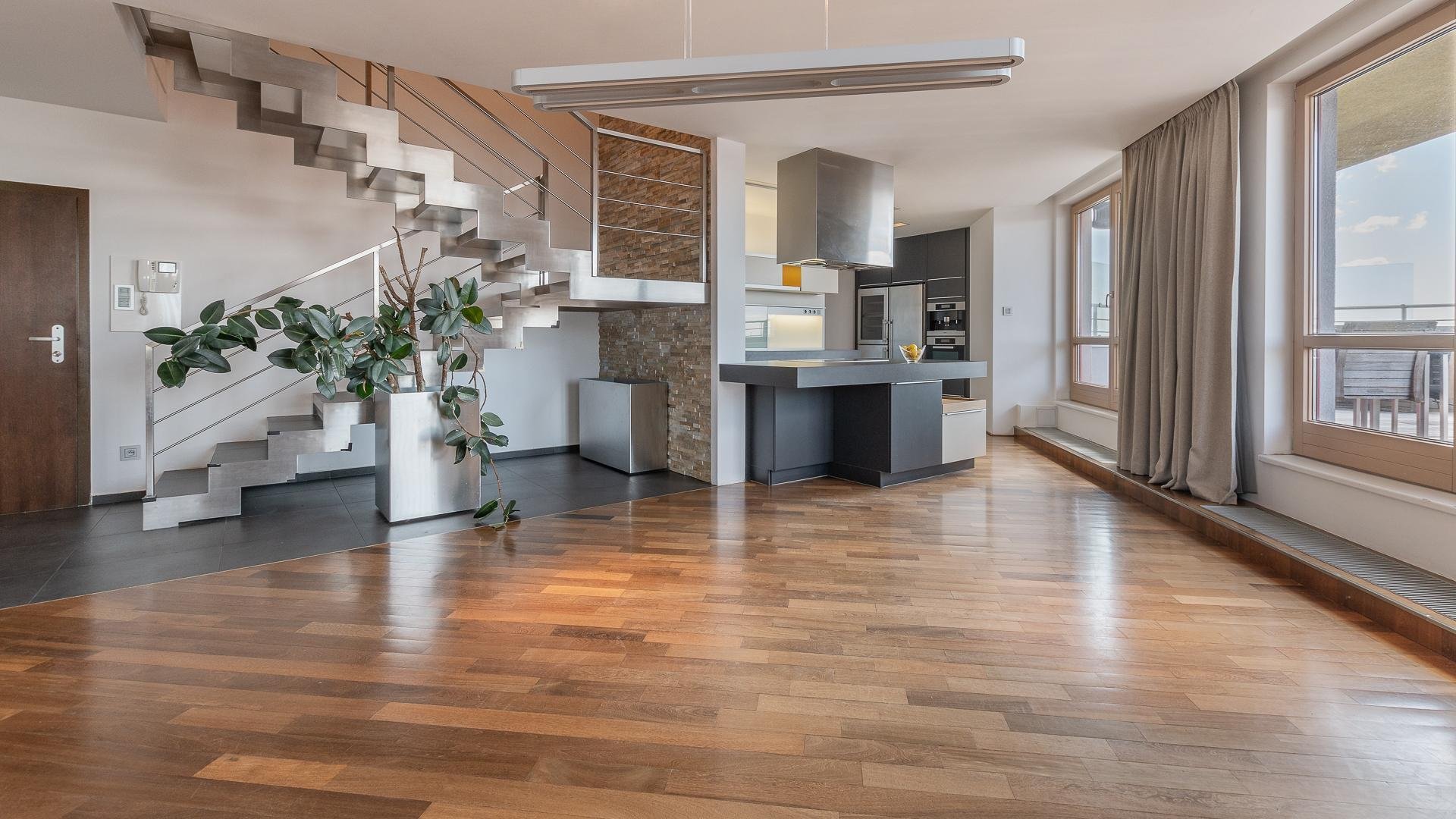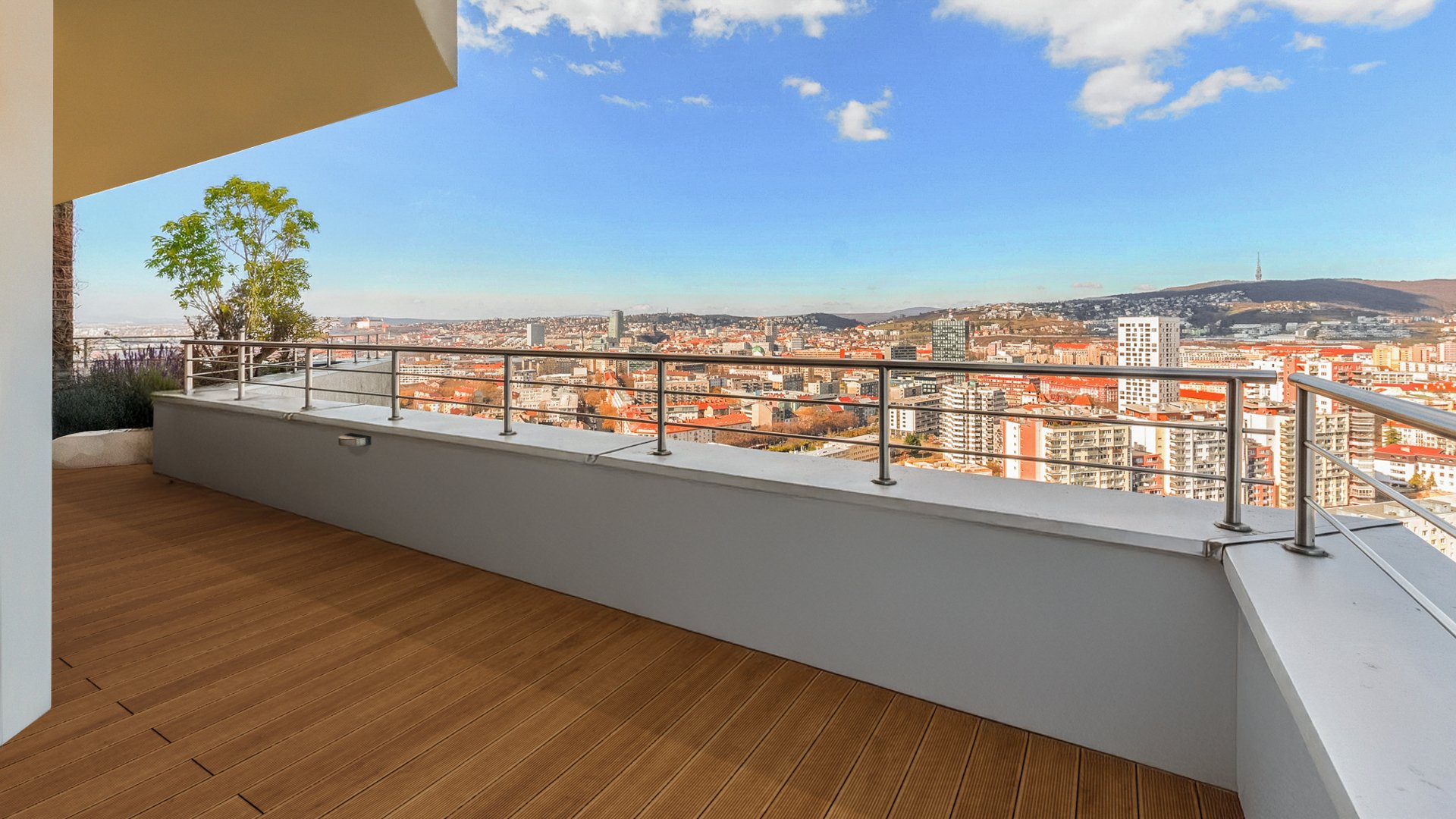 Slovakia Sotheby’s International Realty offers for rent a generous 4 bedroom duplex apartment with six terraces, located on the top two floors of the Gloria residential project on Zahradnicka Street in Bratislava. Situated on the 26th and 27th floors, the apartment boasts panoramic views of the city, Bratislava Castle, and Koliba, meeting the highest expectations for urban living.