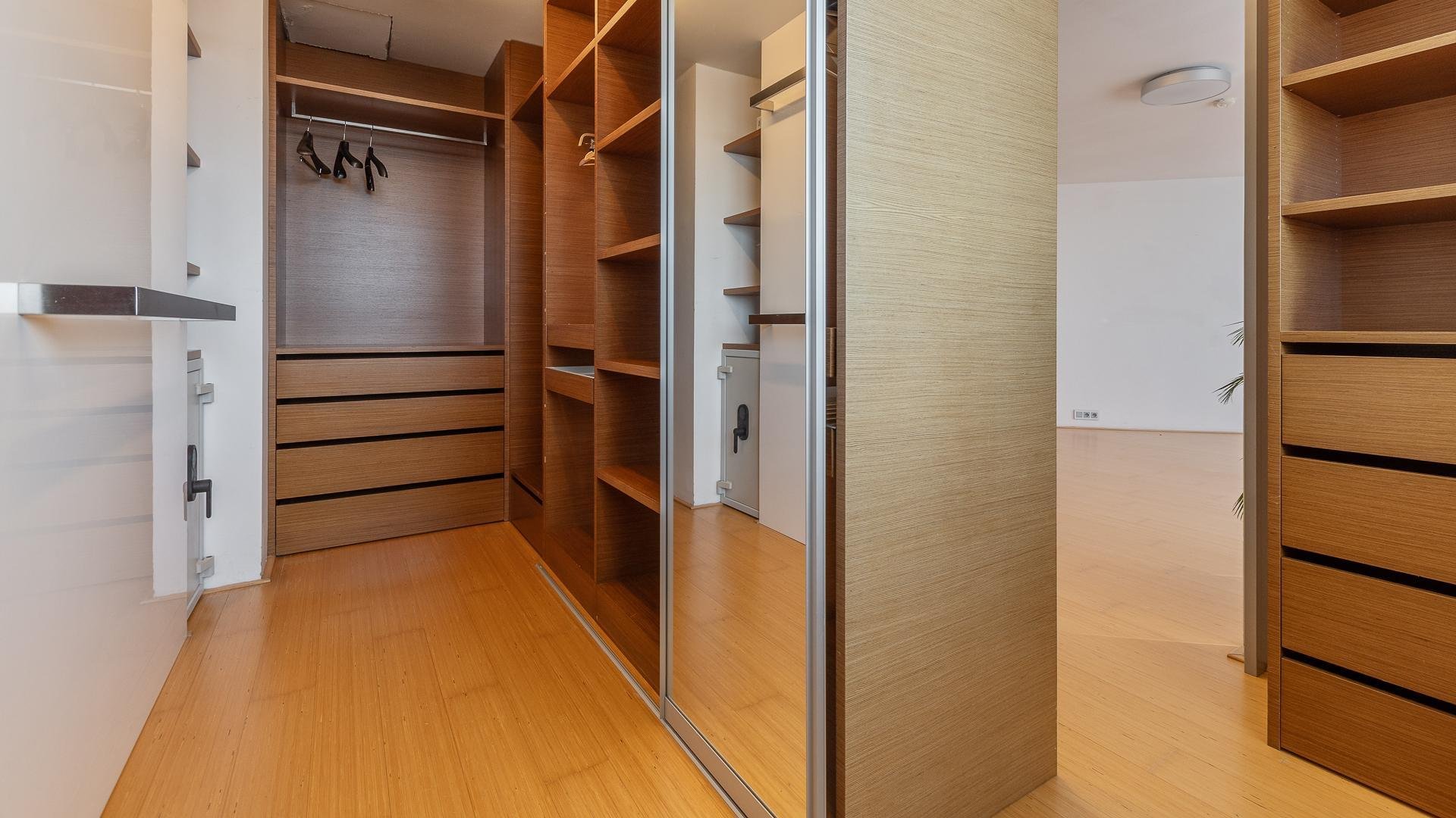 - custom-built wardrobes, including a walk-in closet