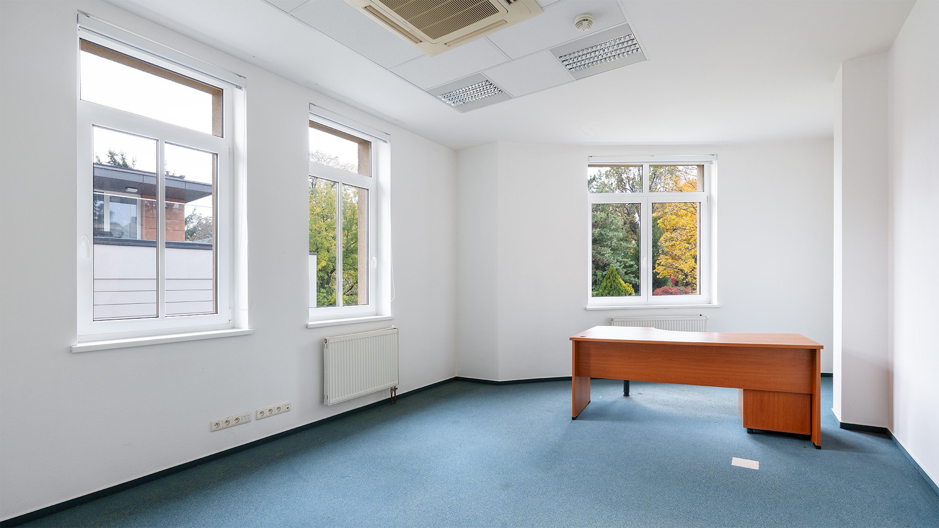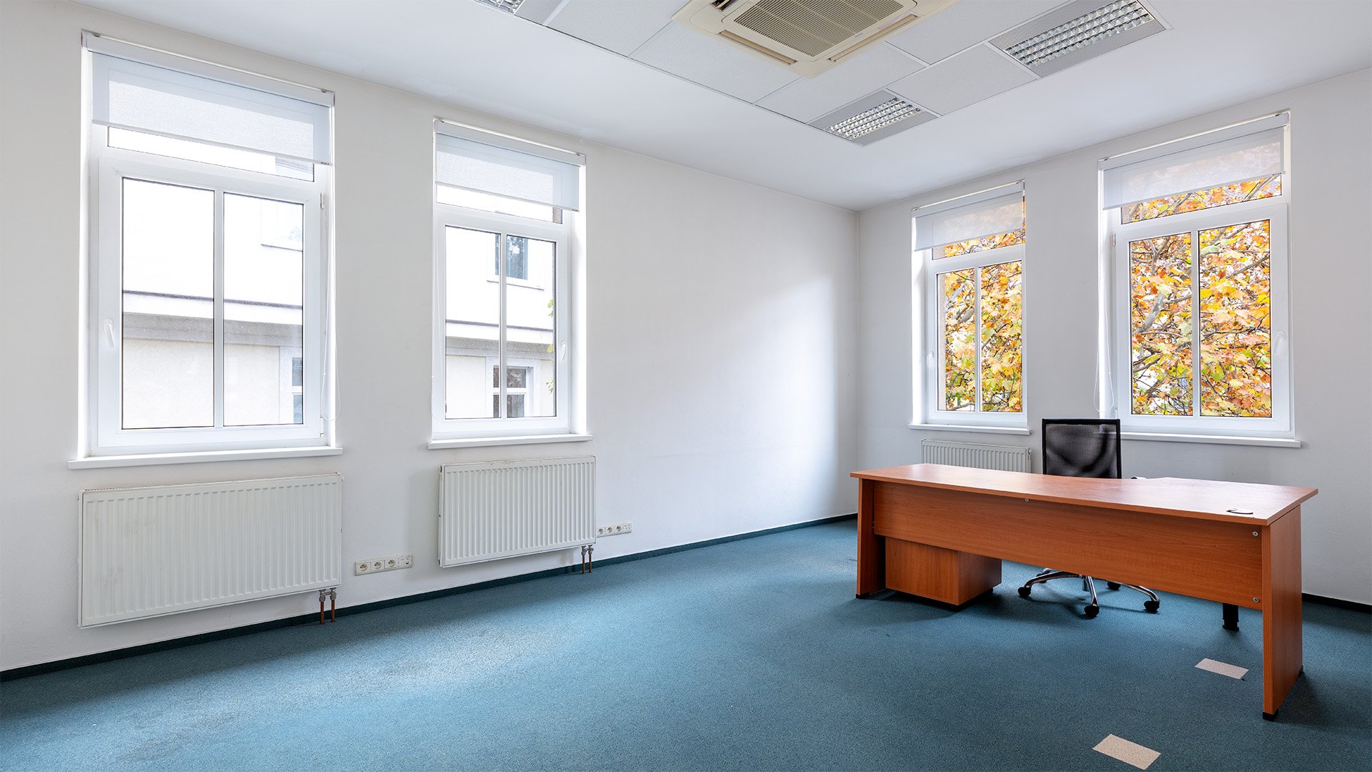 The entire 3rd floor with an area of 274 sqm offers seven separate offices (or 6 offices + meeting room), a kitchenette, two restrooms (ladies/gents), and technical facilities. The dual southwest and northwest orientation ensures natural daylight throughout the day. Standard features include Daikin air conditioning, optical internet connection, HELLA interior shading, and an elevator with direct floor access.
