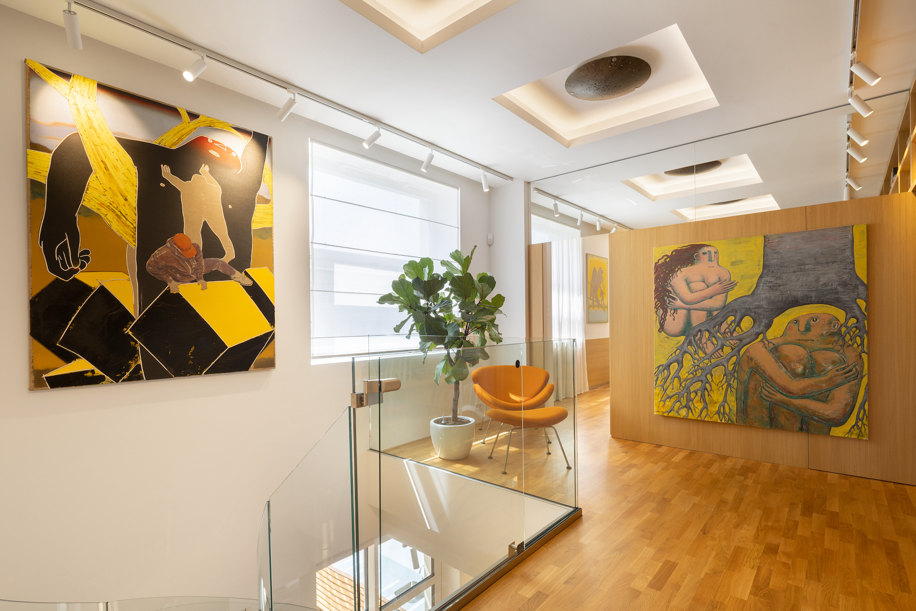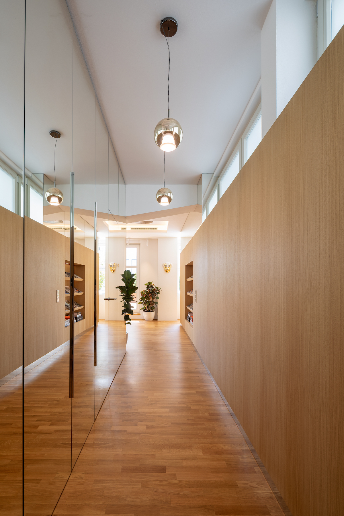 The technological standard of the property ranks among the highest in today’s residential market. Air conditioning and ventilation are seamlessly integrated into recessed ceilings, which also house both primary and ambient lighting. Slim Chicane frameless sliding glass walls ensure high thermal and acoustic performance while maintaining a refined appearance.