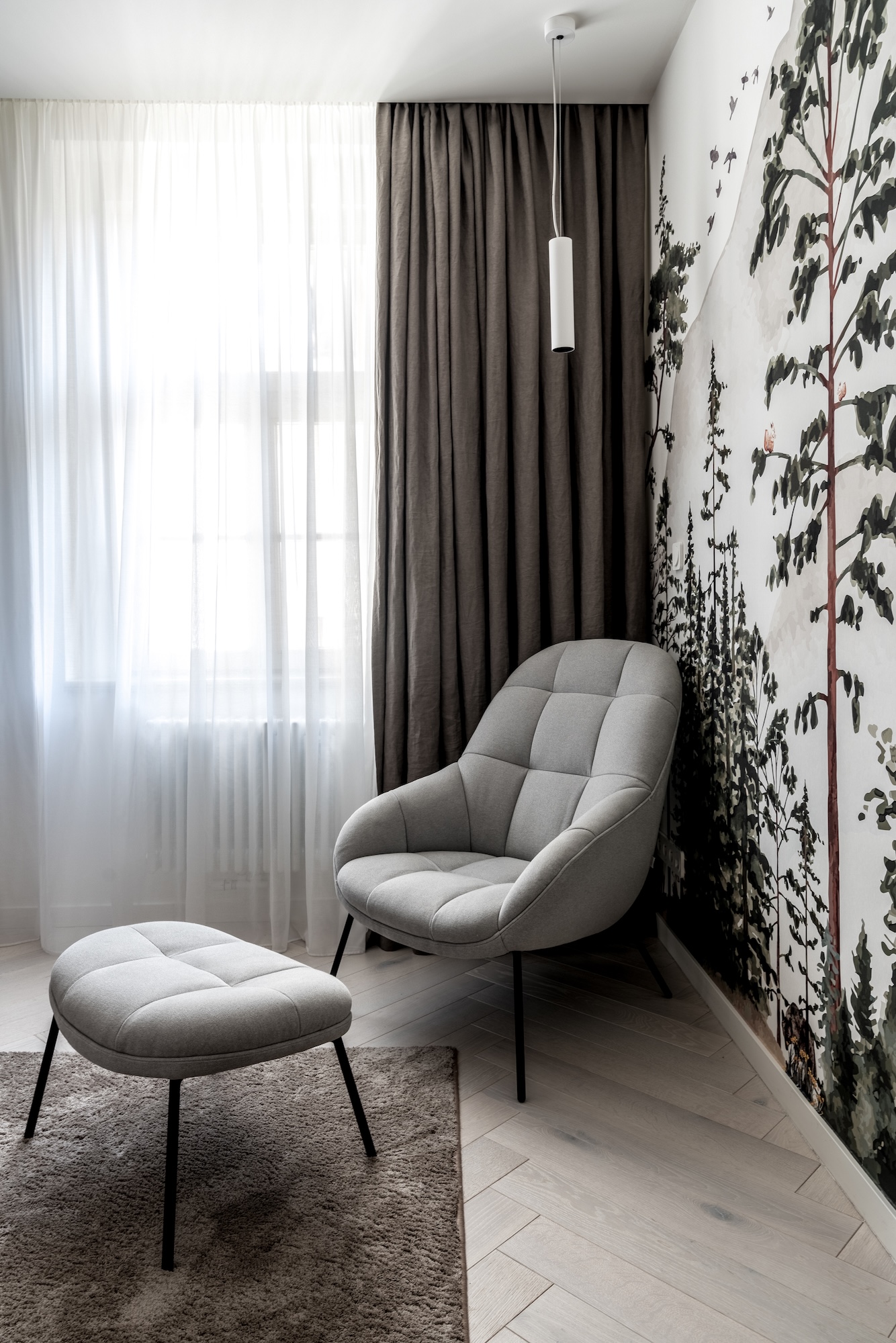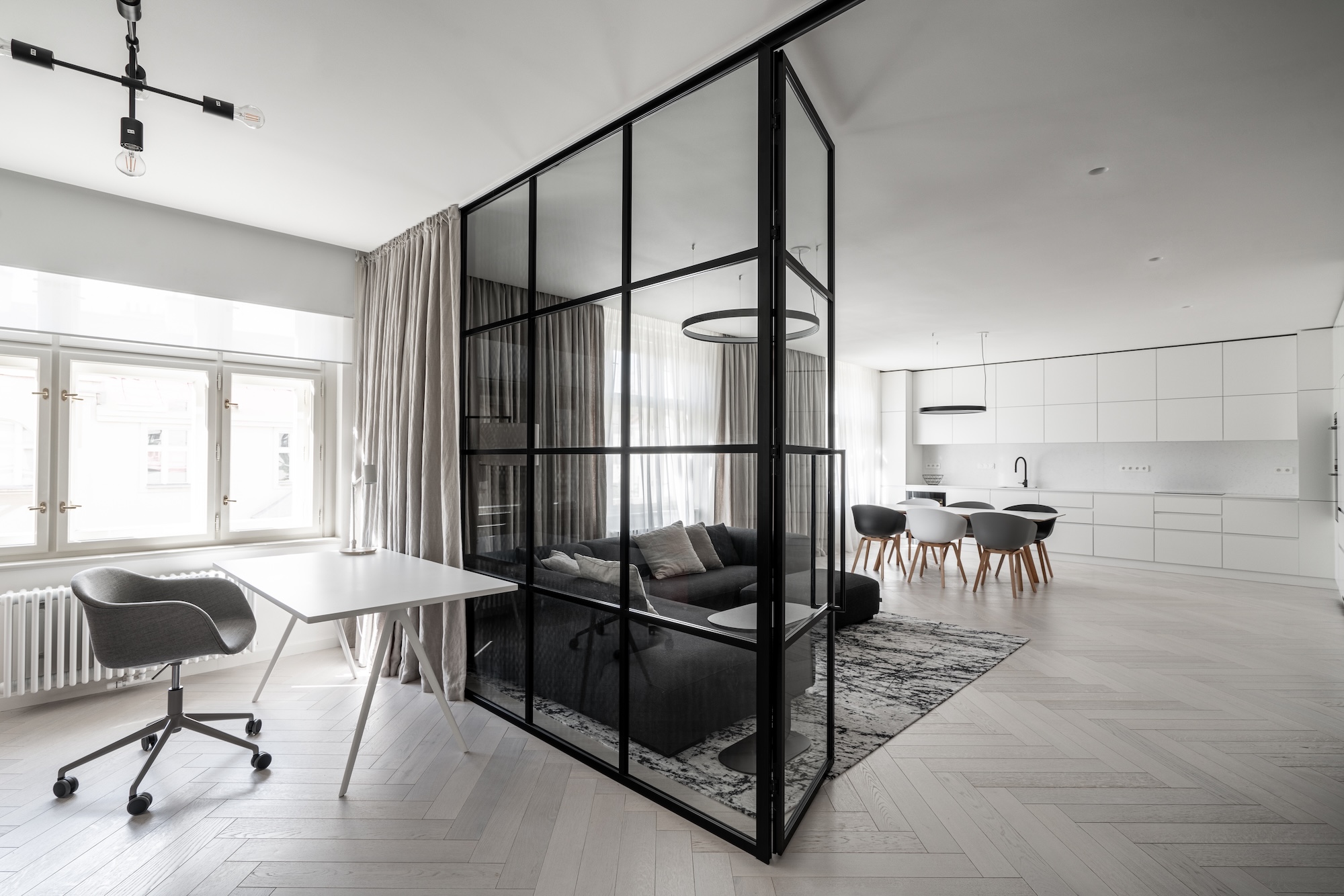 Interiér je navrhnutý renomovaným architektonickým štúdiom OOOOX, ktoré mu dodalo minimalistickú eleganciu s dôrazom na detail. V každej miestnosti je inštalovaná klimatizácia a v suteréne domu sa nachádza pivničná kobka. Byt vyniká nielen vysokým štandardom spracovania, ale aj umiestnením v jednej z najprestížnejších mestských štvrtí Prahy.