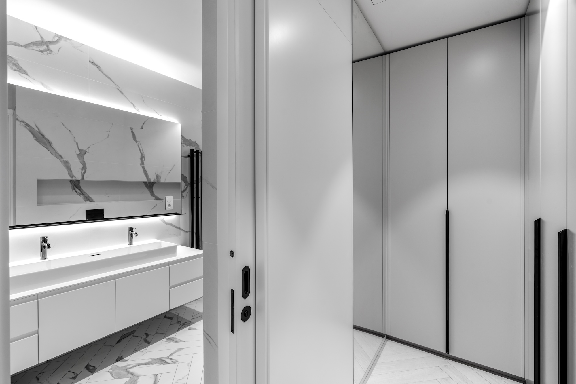 Hlavná spálňa je orientovaná do pokojného vnútrobloku a ponúka priamy vstup na balkón. Ďalšie dve izby poskytujú flexibilný priestor – môžu slúžiť ako detská izba, pracovňa či hosťovský apartmán. K dispozícii sú dve moderné kúpeľne – jedna s vaňou, druhá s priestranným sprchovým kútom, doplnené o samostatnú toaletu pre hostí a technickú miestnosť.