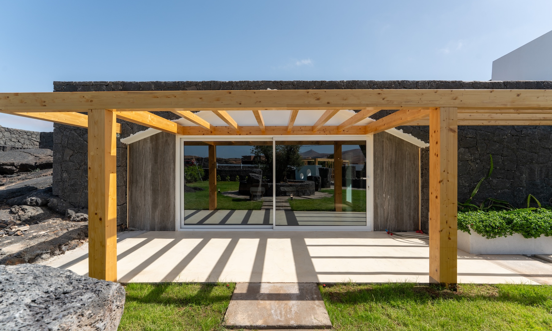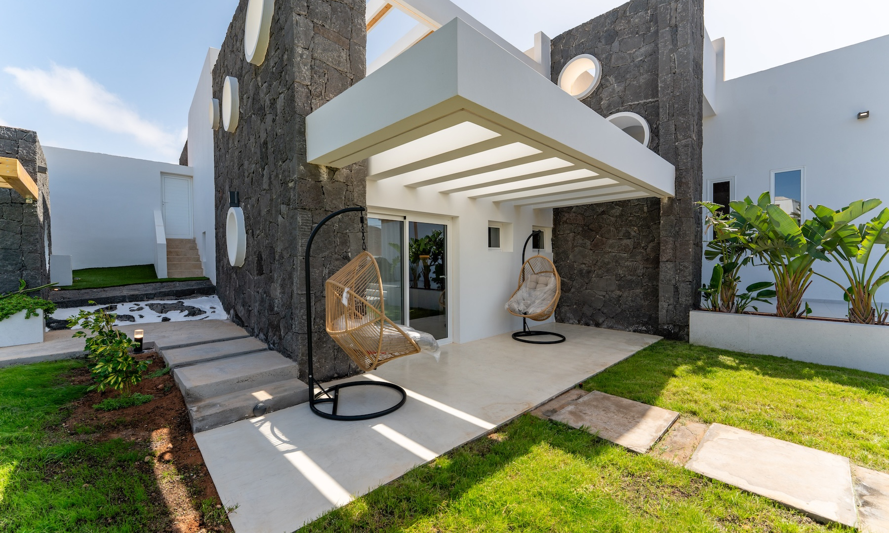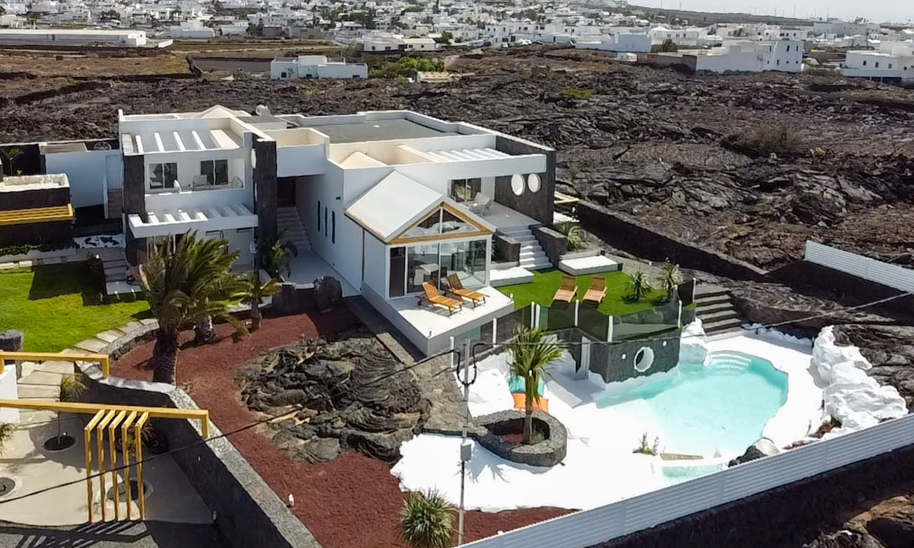 Tmavý čadič a žiarivo biela farba spoločne rámujú priestranné interiéry, ktoré sa otvárajú do tichých átrií, na slnečnú terasu a do záhrady. Dominantou exteriéru je bazén inšpirovaný obľúbenou turistickou atrakciou Jameos del Agua, doplnený o fínsku saunu z nórskeho smreku, ktoré spoločne vytvárajú dokonalé miesto na relax. Energetická efektivita, moderné technológie a ambientné LED osvetlenie sú citlivo integrované a podčiarkujú filozofiu udržateľného, no pritom sofistikovaného bývania.