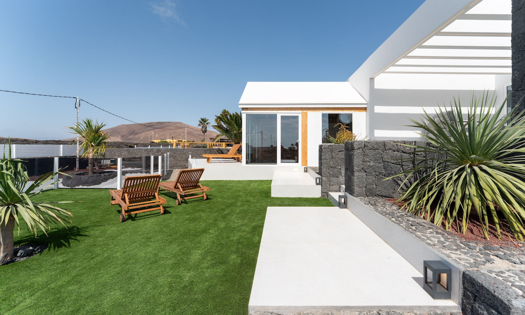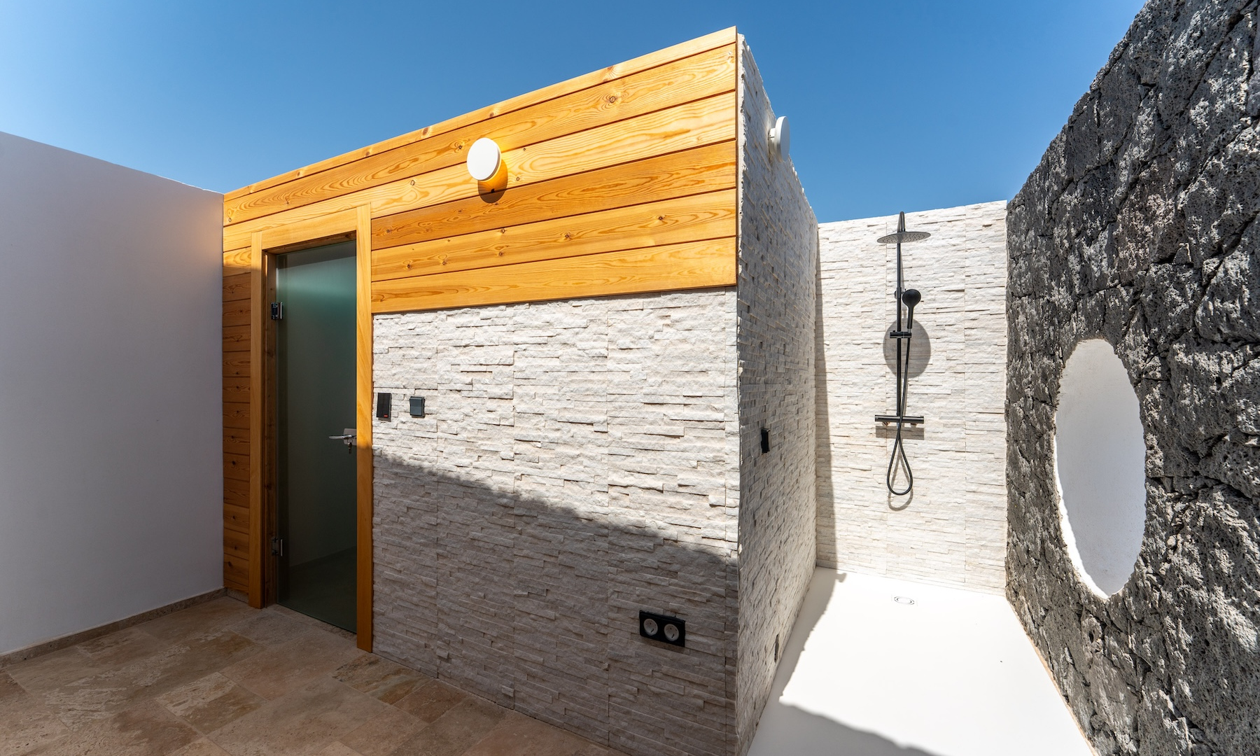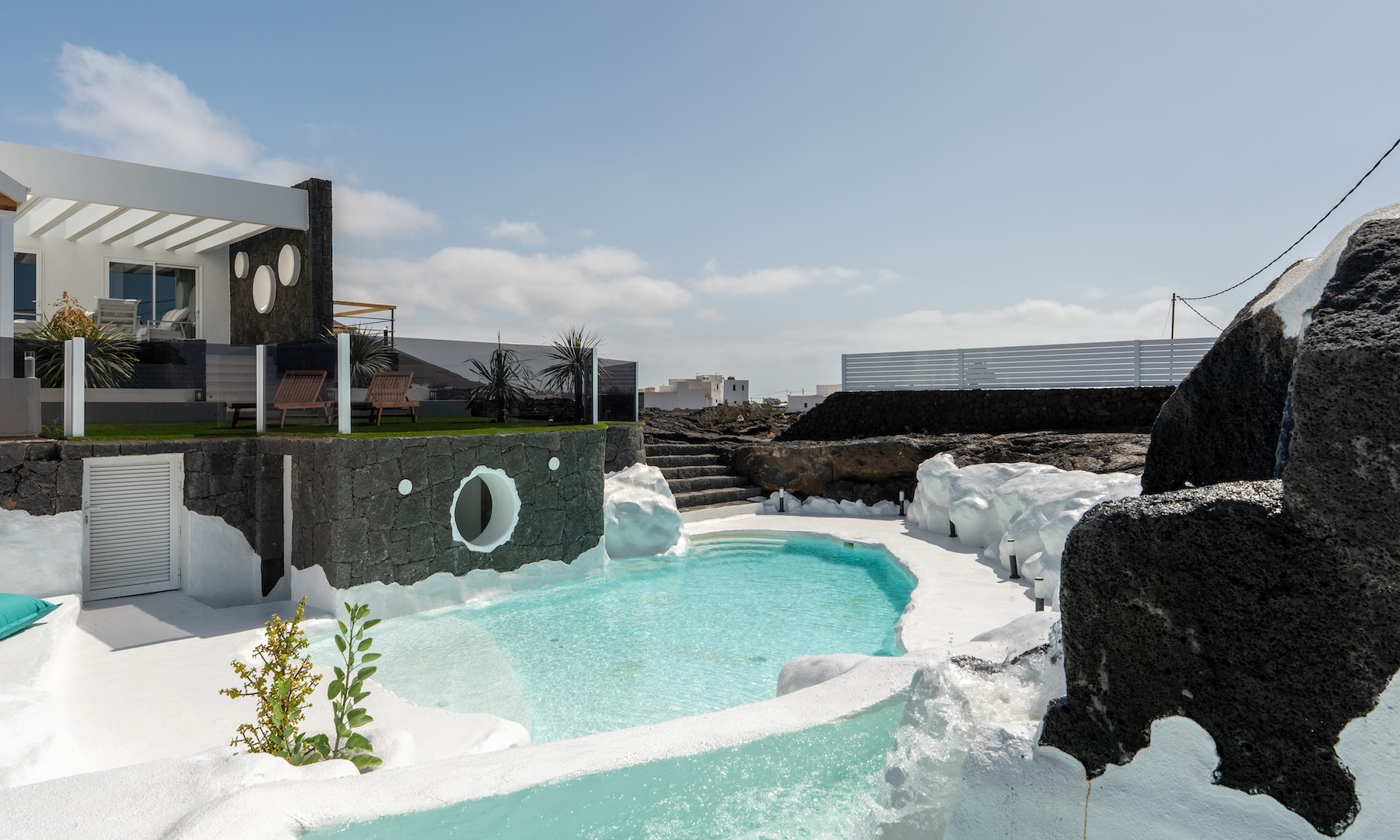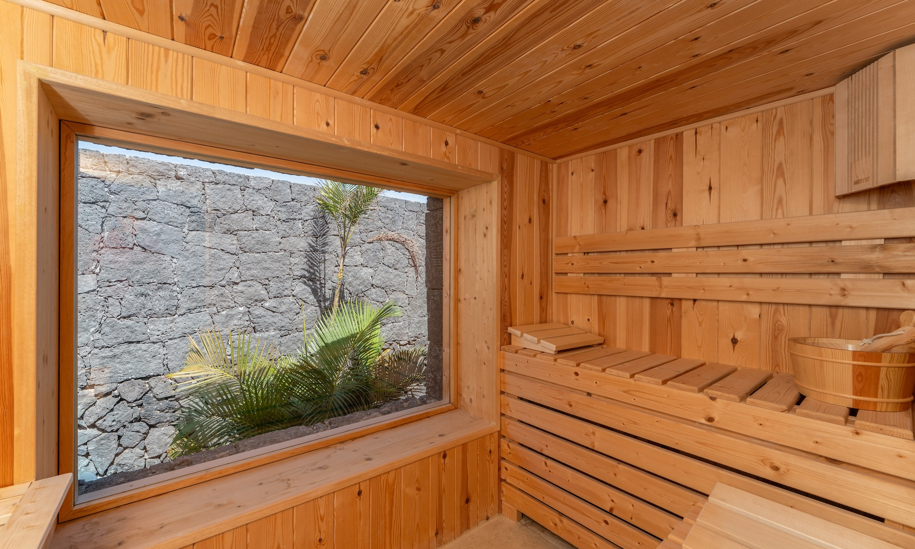 Tmavý čadič a žiarivo biela farba spoločne rámujú priestranné interiéry, ktoré sa otvárajú do tichých átrií, na slnečnú terasu a do záhrady. Dominantou exteriéru je bazén inšpirovaný obľúbenou turistickou atrakciou Jameos del Agua, doplnený o fínsku saunu z nórskeho smreku, ktoré spoločne vytvárajú dokonalé miesto na relax. Energetická efektivita, moderné technológie a ambientné LED osvetlenie sú citlivo integrované a podčiarkujú filozofiu udržateľného, no pritom sofistikovaného bývania.