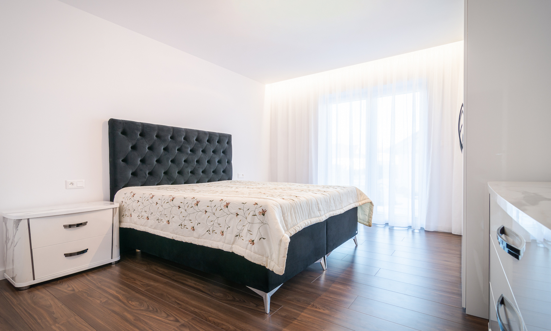Completed in 2023, this newly built residence is constructed from high-quality Ytong masonry. Technical features include gas underfloor heating with individual room controls and pre-installation for a security camera system and alarm. Interior finishes combine laminate flooring, natural stone, and Italian tiling, uniting contemporary aesthetics with durable practicality suitable for long-term living as well as rental purposes.