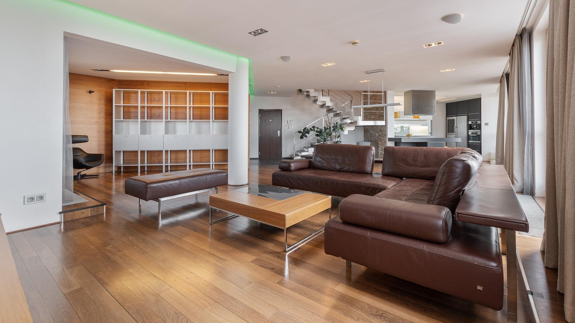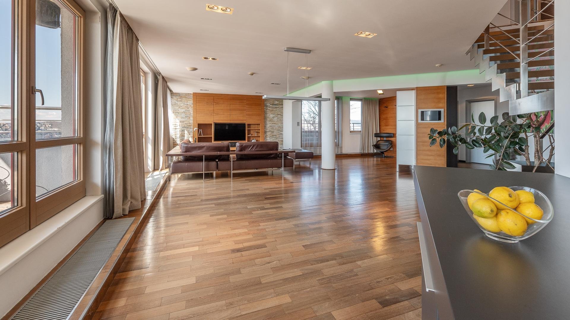 Slovakia Sotheby’s International Realty offers for rent a generous 4 bedroom duplex apartment with six terraces, located on the top two floors of the Gloria residential project on Zahradnicka Street in Bratislava. Situated on the 26th and 27th floors, the apartment boasts panoramic views of the city, Bratislava Castle, and Koliba, meeting the highest expectations for urban living.