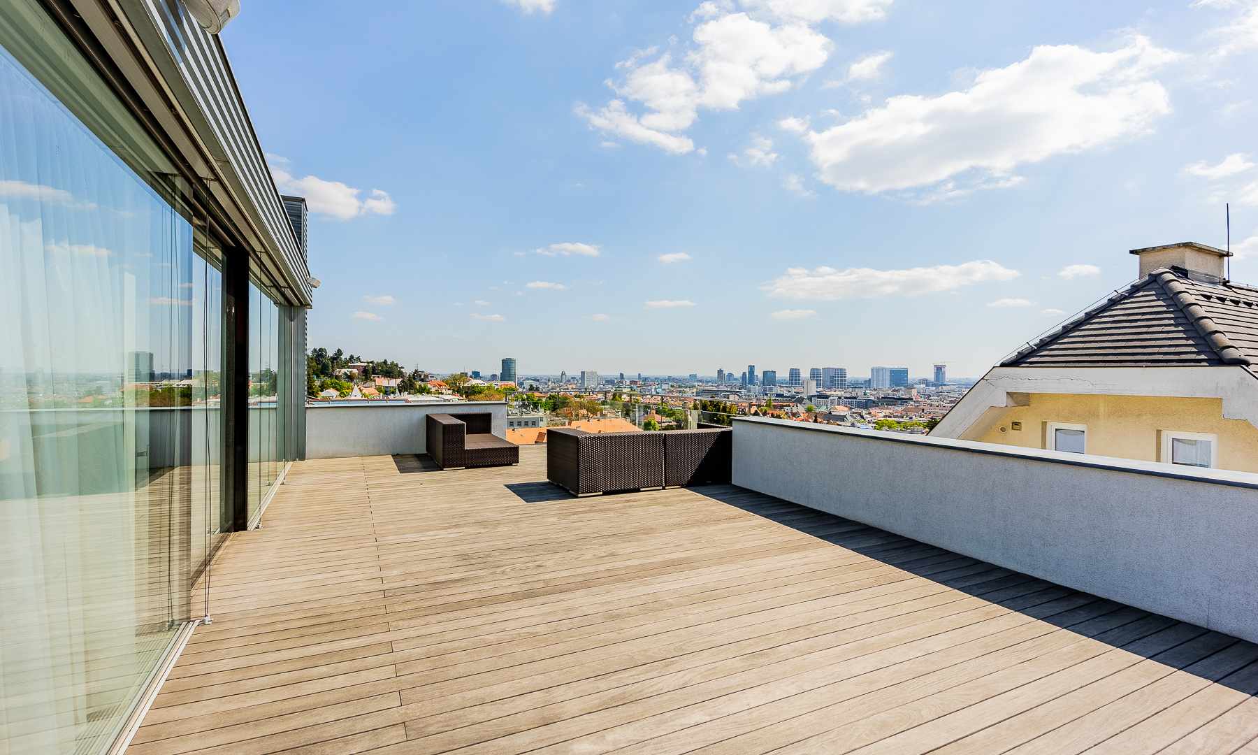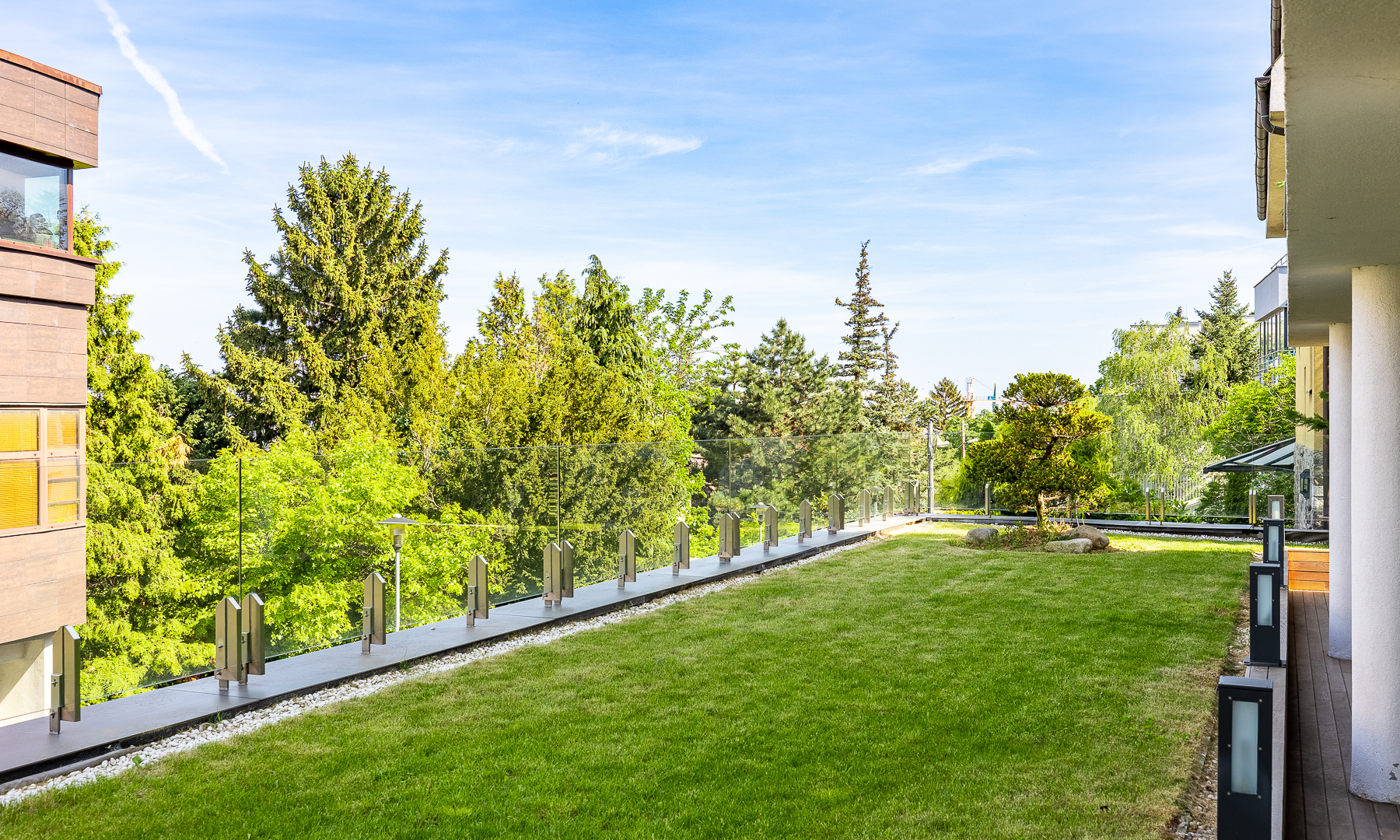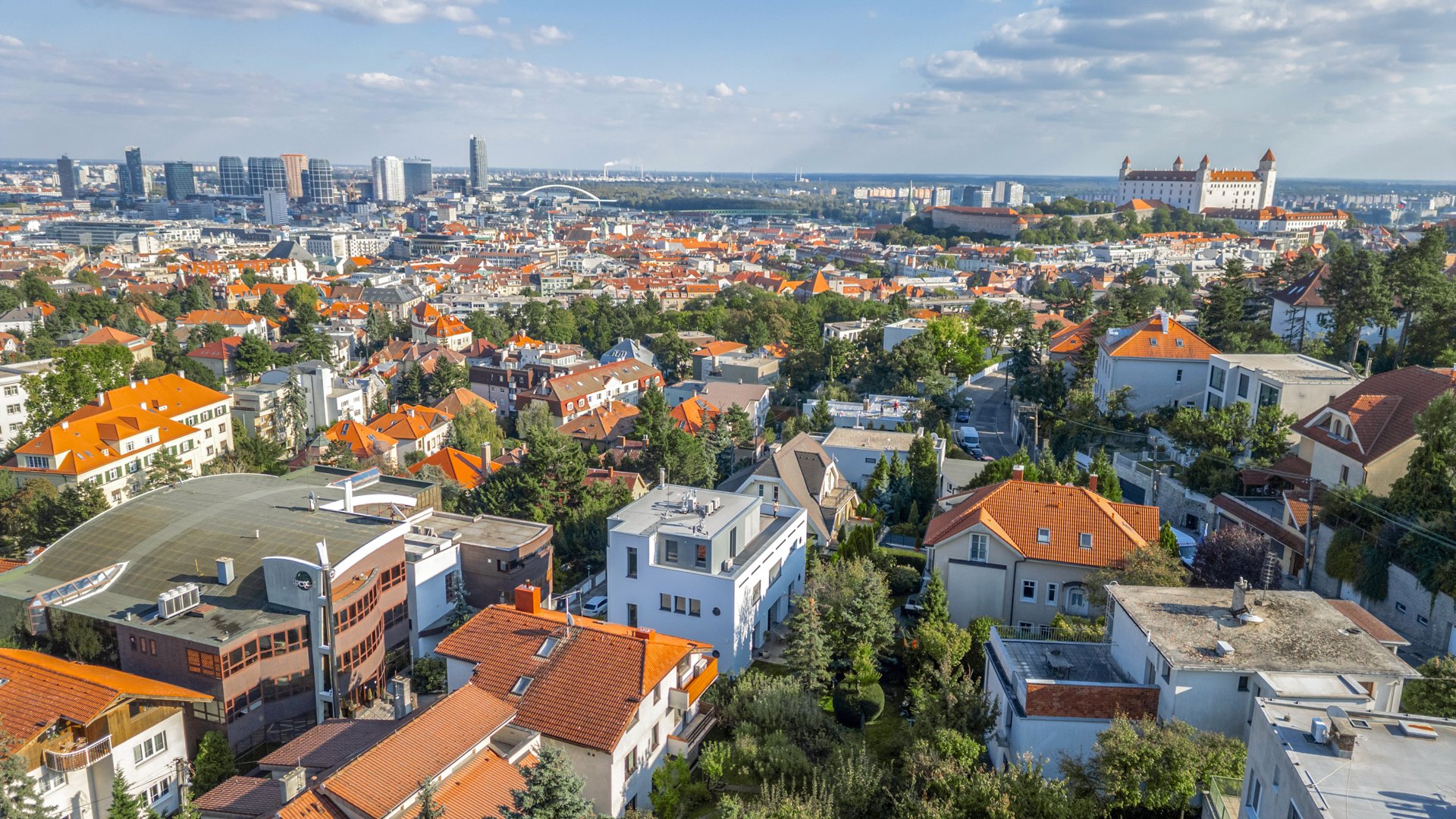 On the fourth floor there is a master bedroom with a generous wardrobe and a private bathroom. There are also two bedrooms, a bathroom, a storage room and a separate wardrobe. The top floor consist of a bright room with its own kitchen, wardrobe and toilet and can be ideal for teenagers in the necessary privacy or study for the owner. This recessed floor offers a spacious terrace with an area of 65 sqm with a magnificent view of the city and its dominant Bratislava Castle.